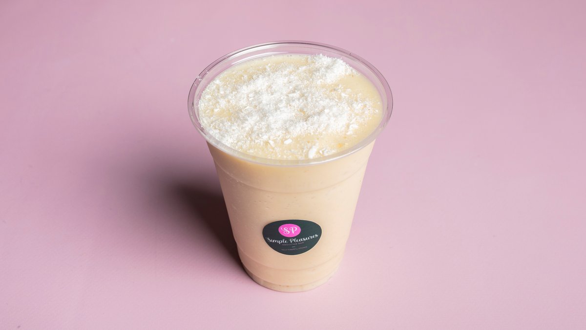 A mood-brightening blend of strawberries, pineapple, coconut milk, lime, and honey — topped with coconut flakes. Sweet, tangy, and sunshiney. Instant island vibes for your body and mind.