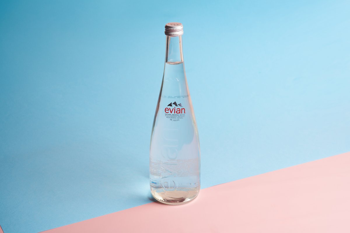 Evian Natural Mineral Water in a glass bottle