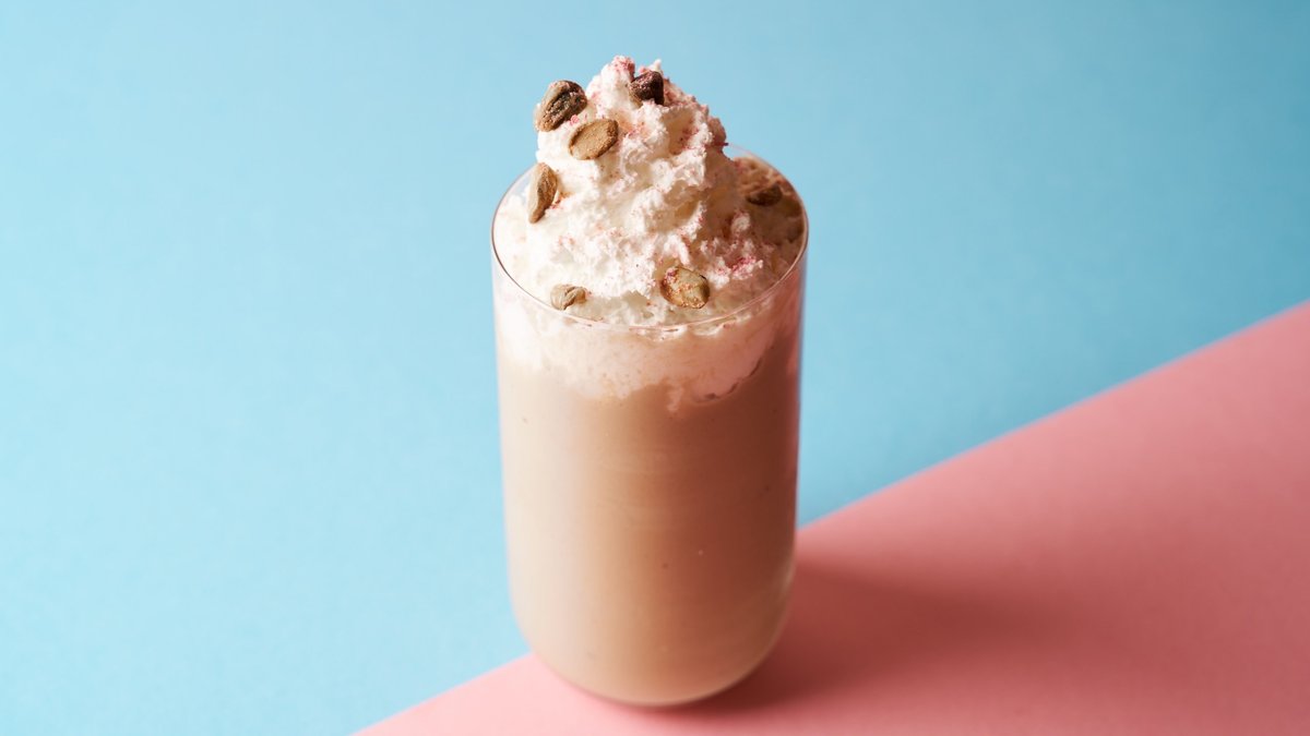 Our signature recipe of milkshake with fresh a natural pistachio paste and raspberries
