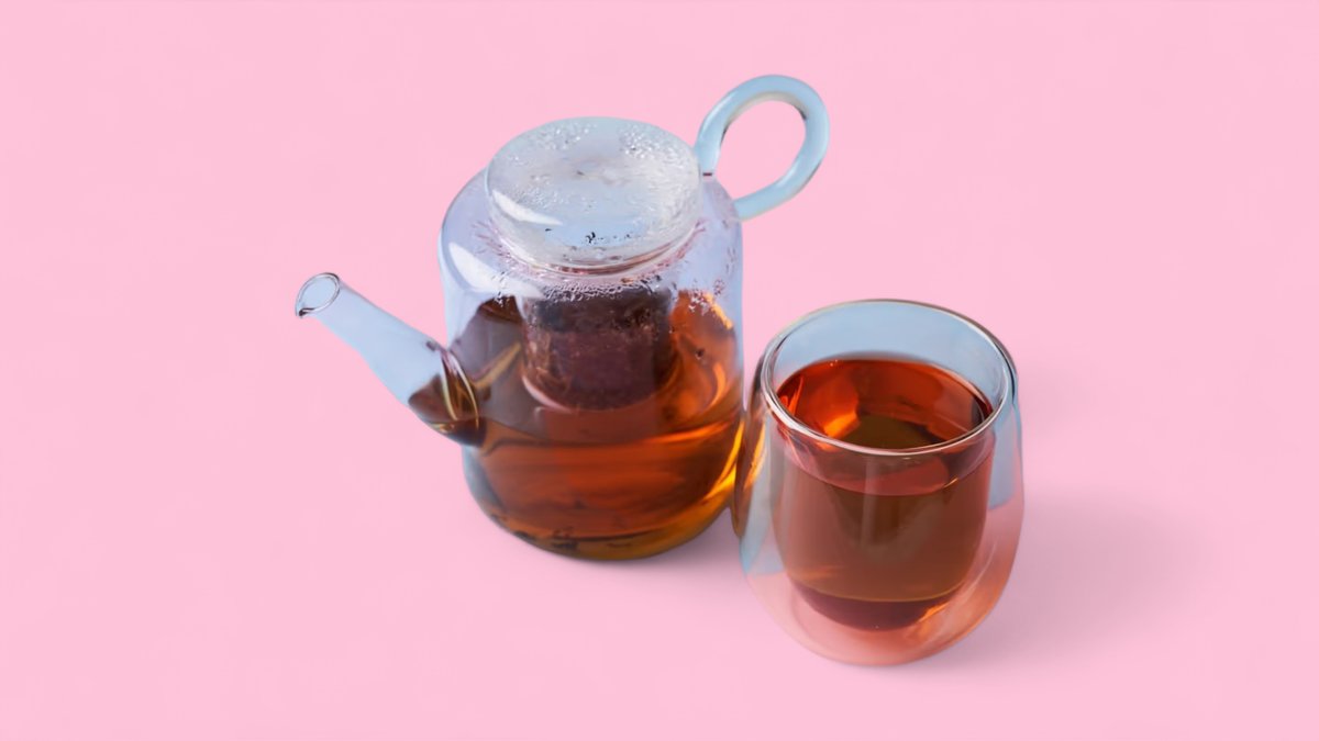 A delicious soft drink made by blending a tea base with a fruit syrup and peach popping boba.