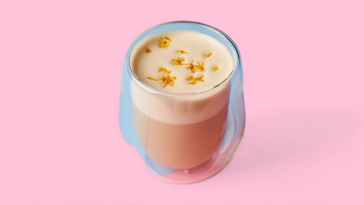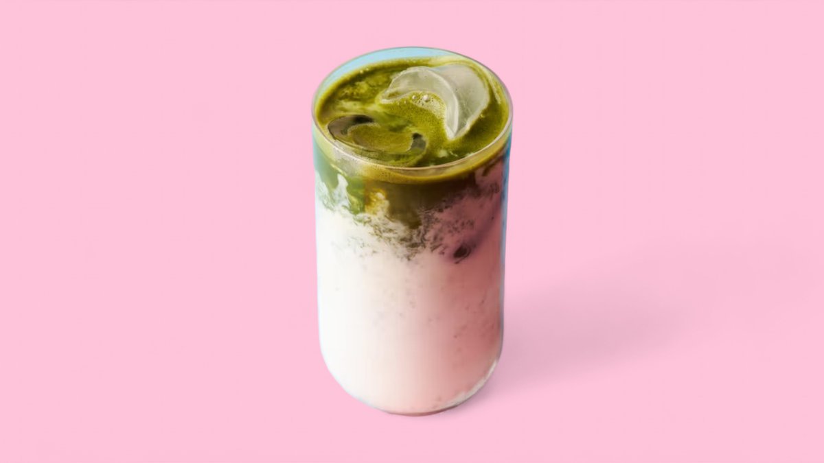 Milk, mango puree, matcha