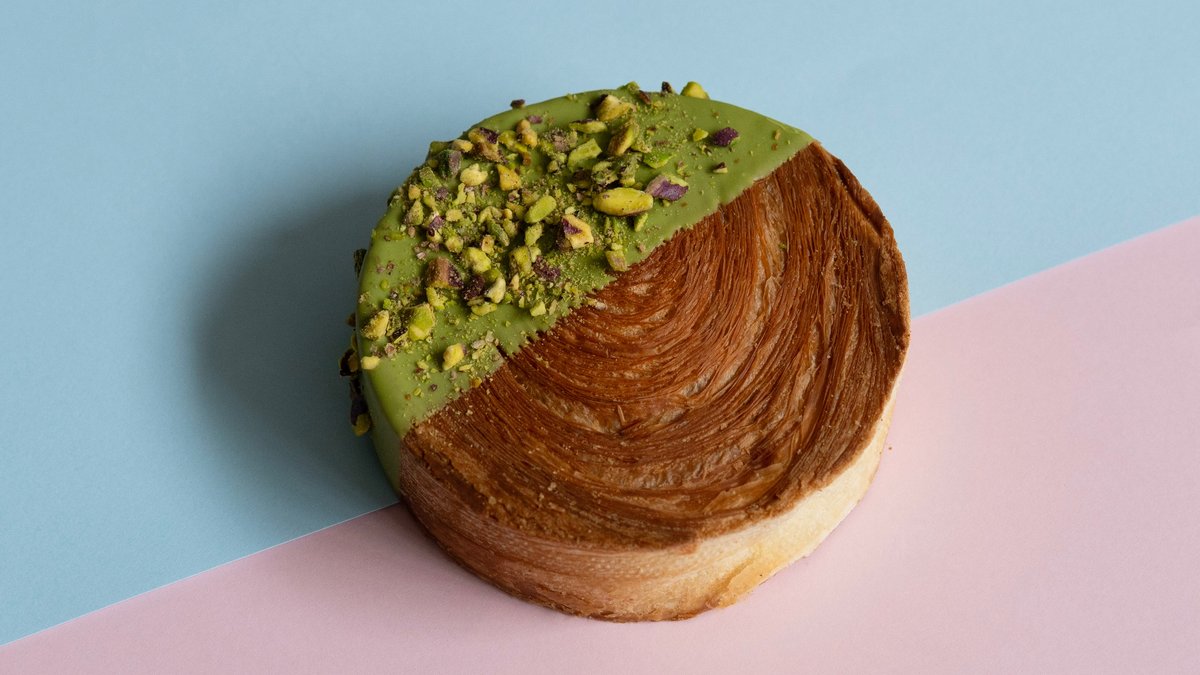 Crispy croissant roll with sweet pistachio cream made by our own