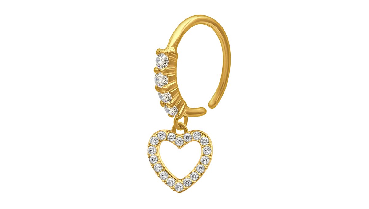 Gold Plated Clicker Ring with Heart Dangle and CZ