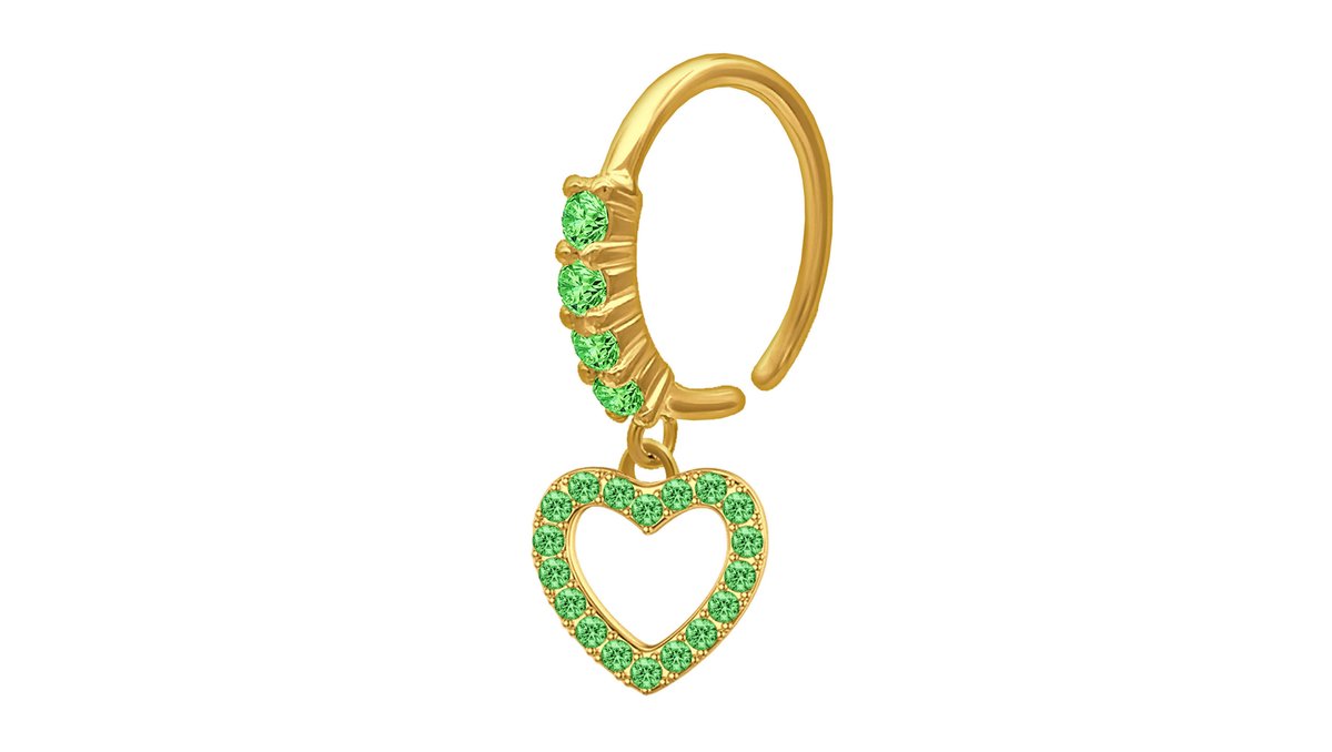 Gold Plated Seamless Ring with a Heart Dangle and Green CZ