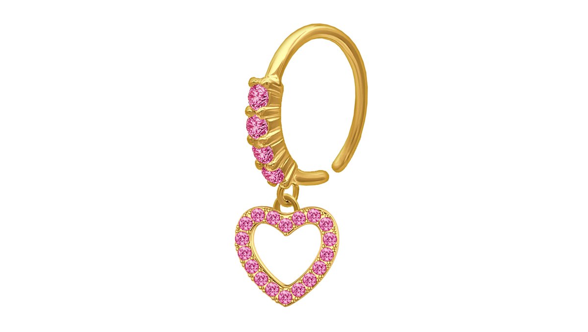 Gold Plated Seamless Ring with a Heart Dangle and Pink CZ