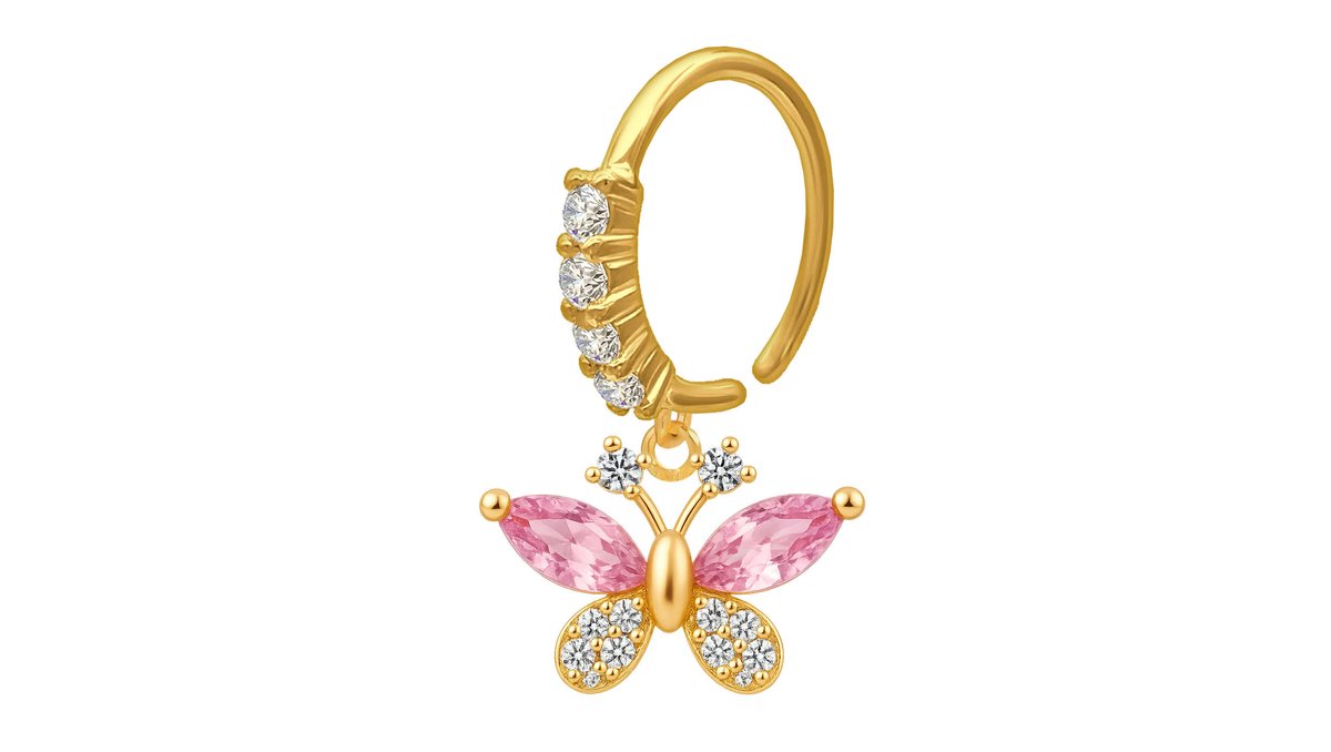 Gold Plated Seamless Ring with Crystal Butterfly Dangle