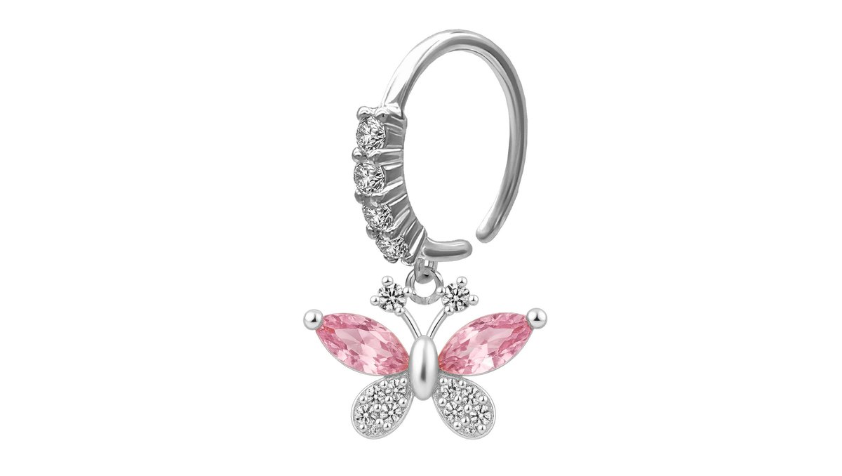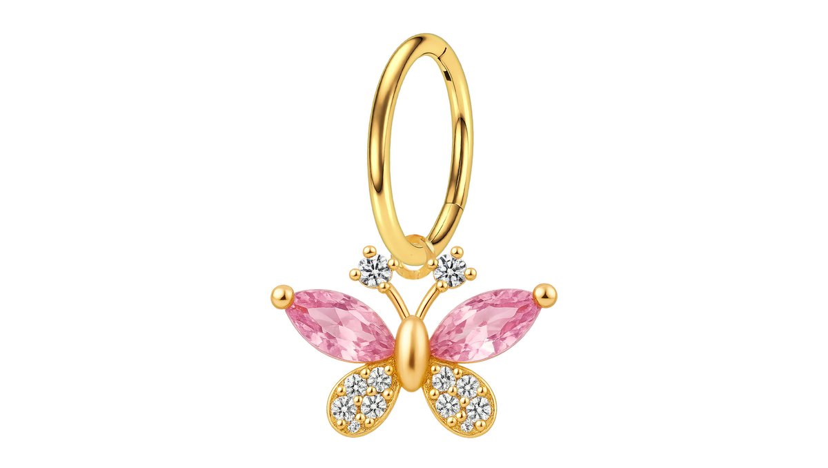 Surgical Steel Clicker Ring with Crystal Butterfly Dangle