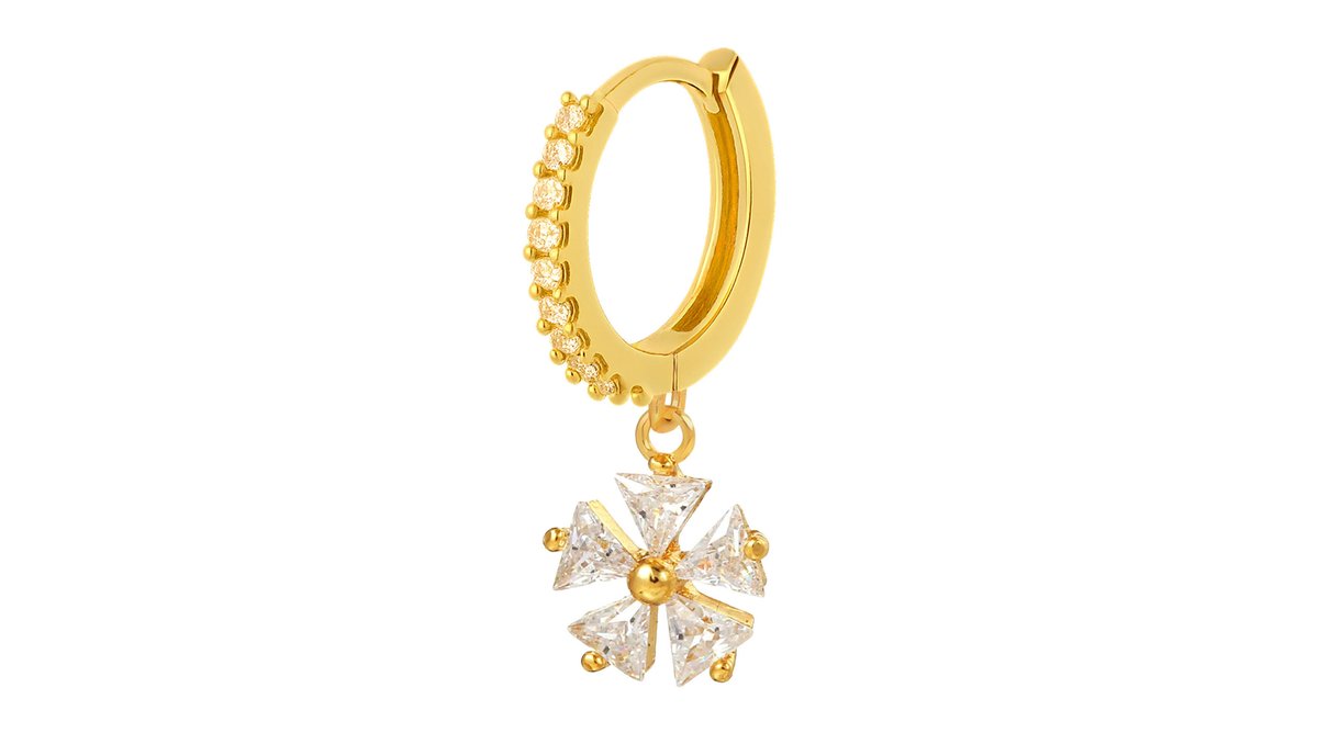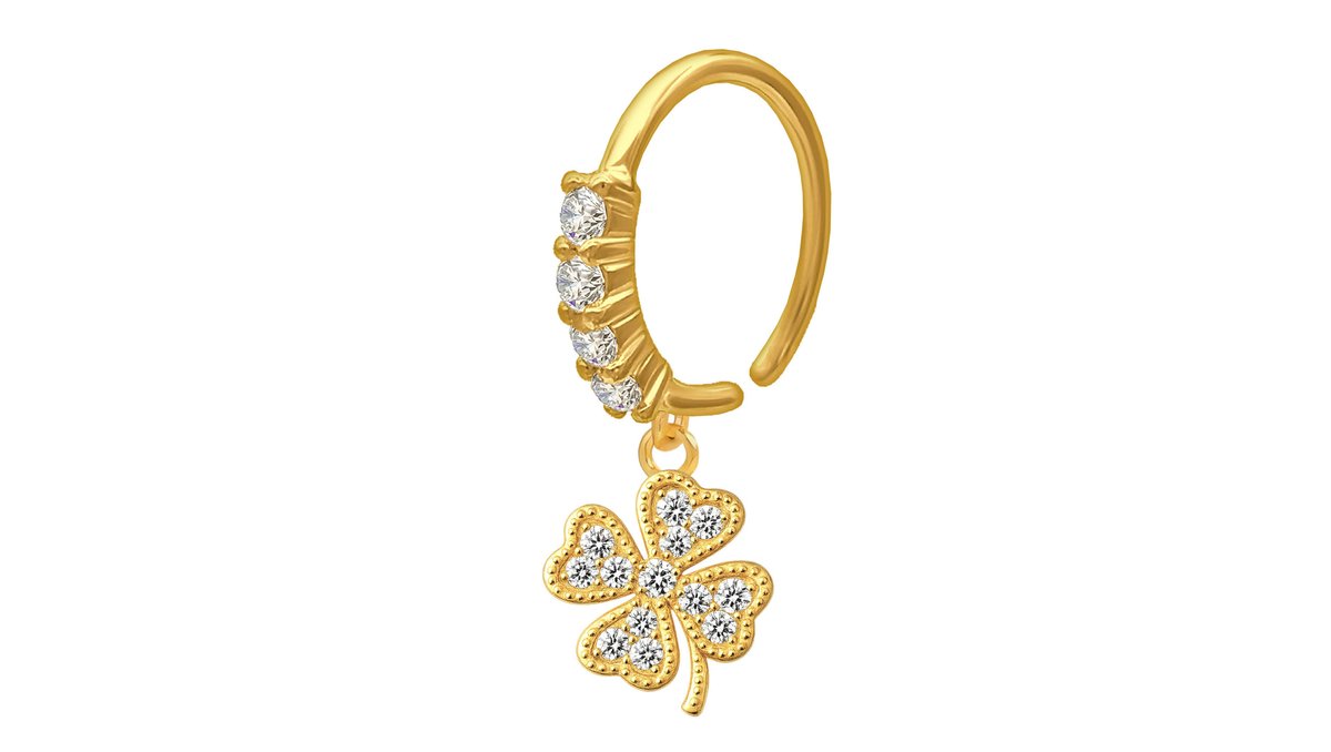 Gold Plated Seamless Ring with a Clover Leaf Dangle and Zirconia