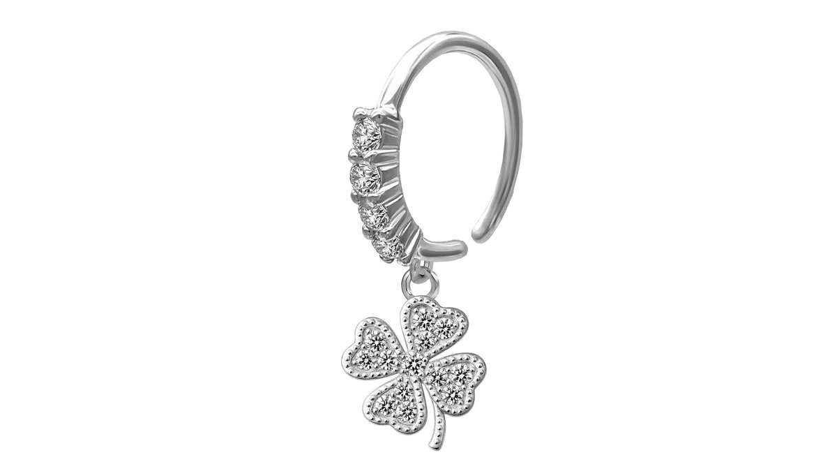Silver Plated Seamless Ring with a Clover Leaf Dangle and Zirconia