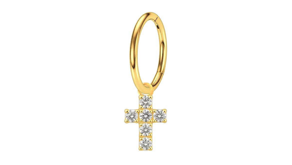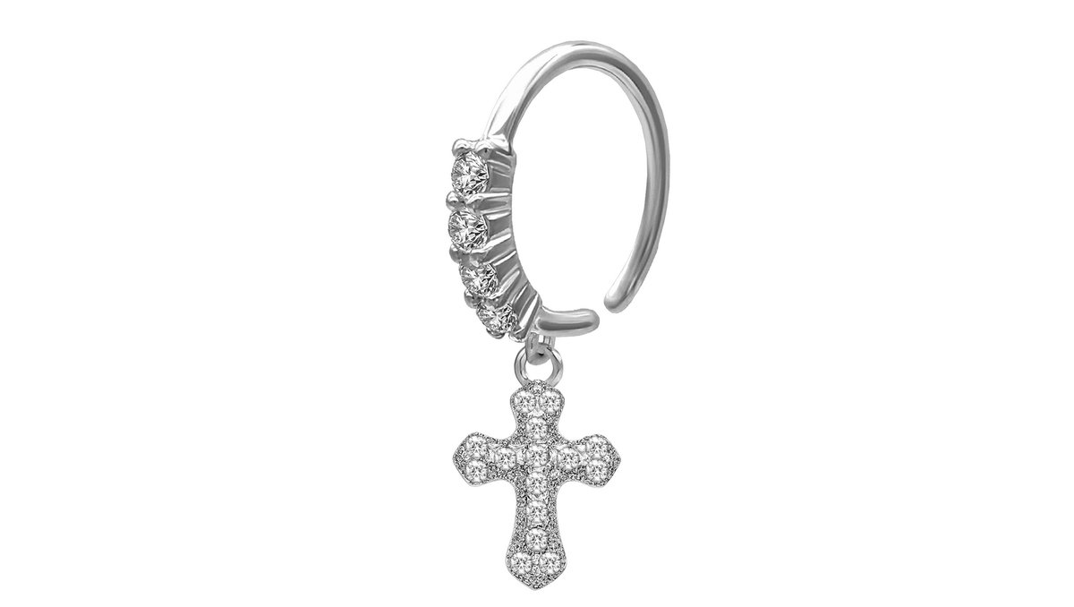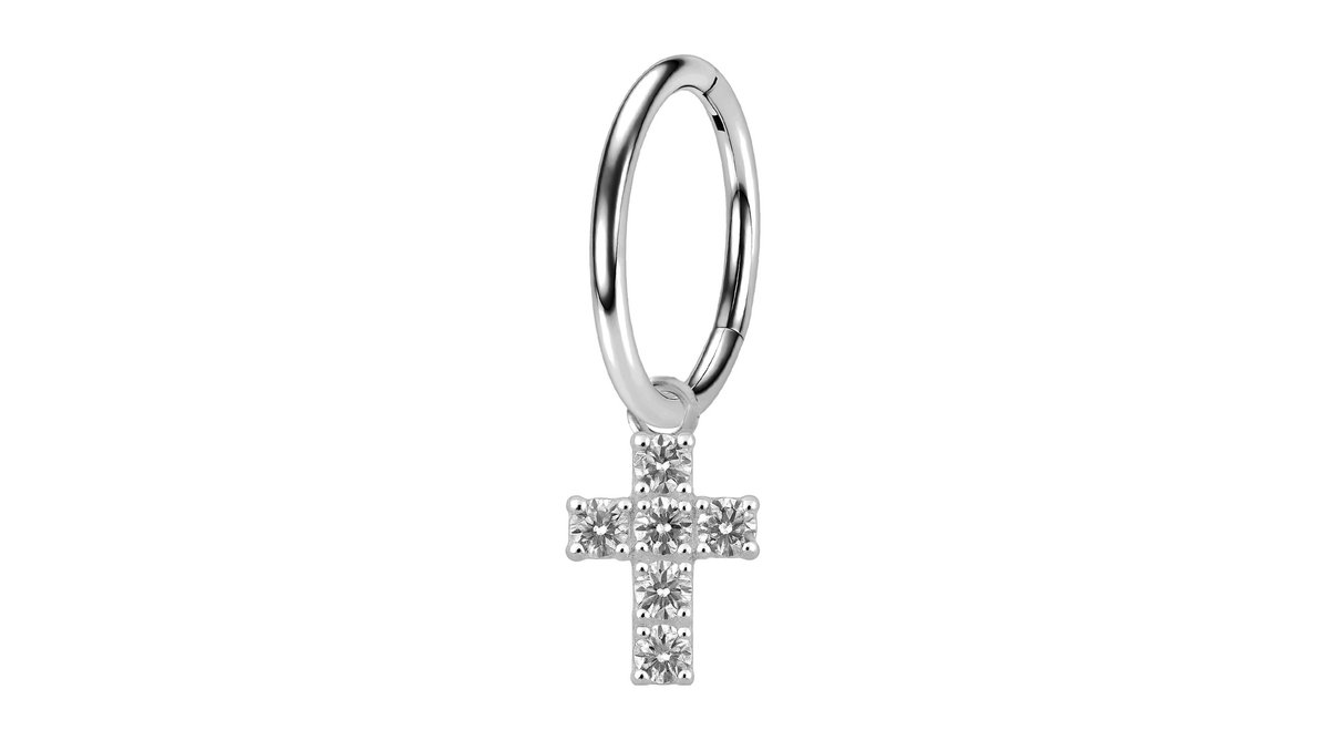 Surgical Steel Clicker Ring with Christian Cross Dangle
