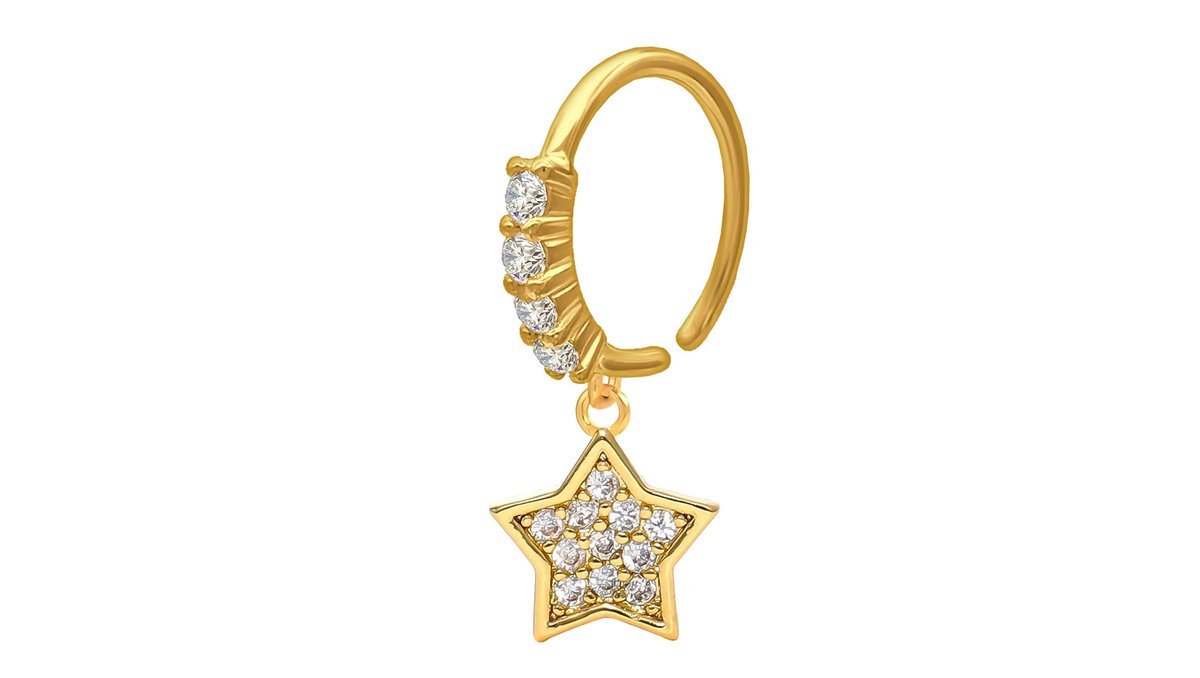 Gold Plated Seamless Ring with a Crystal Star Dangle