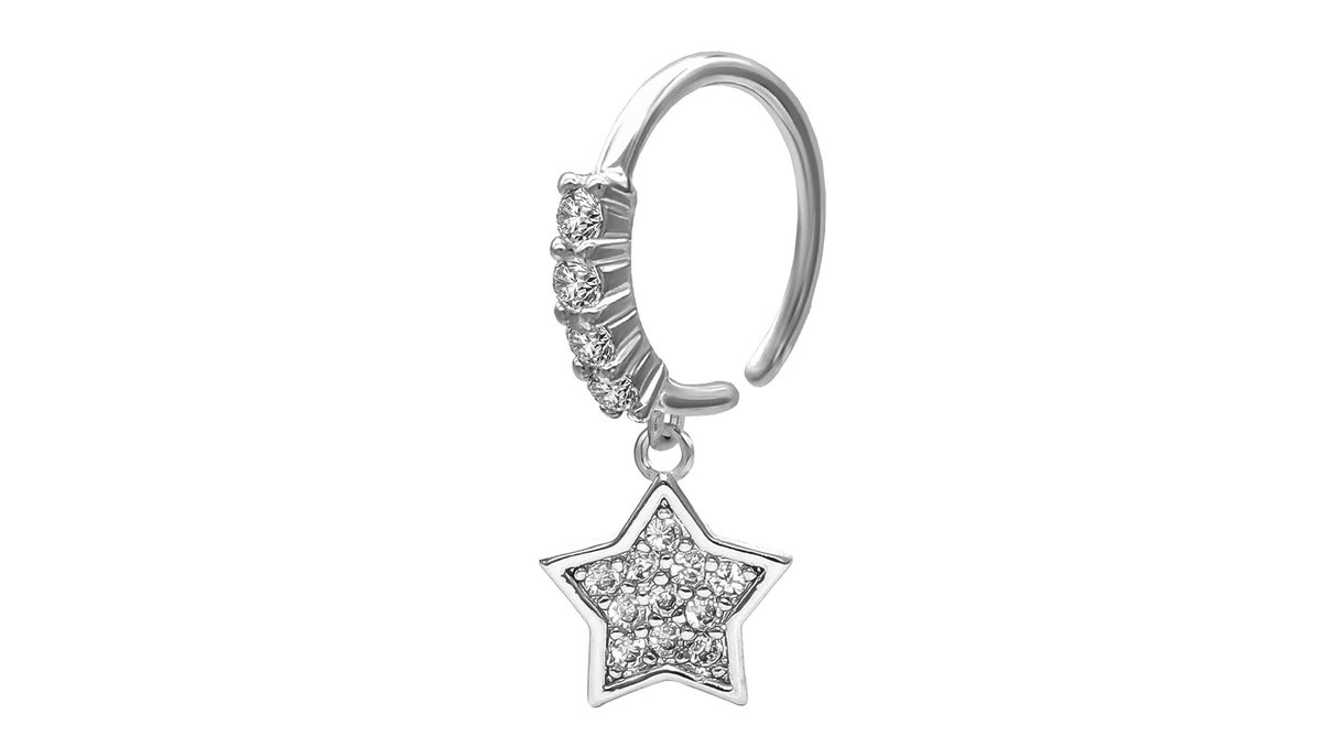 Silver Plated Seamless Ring with a Crystal Star Dangle