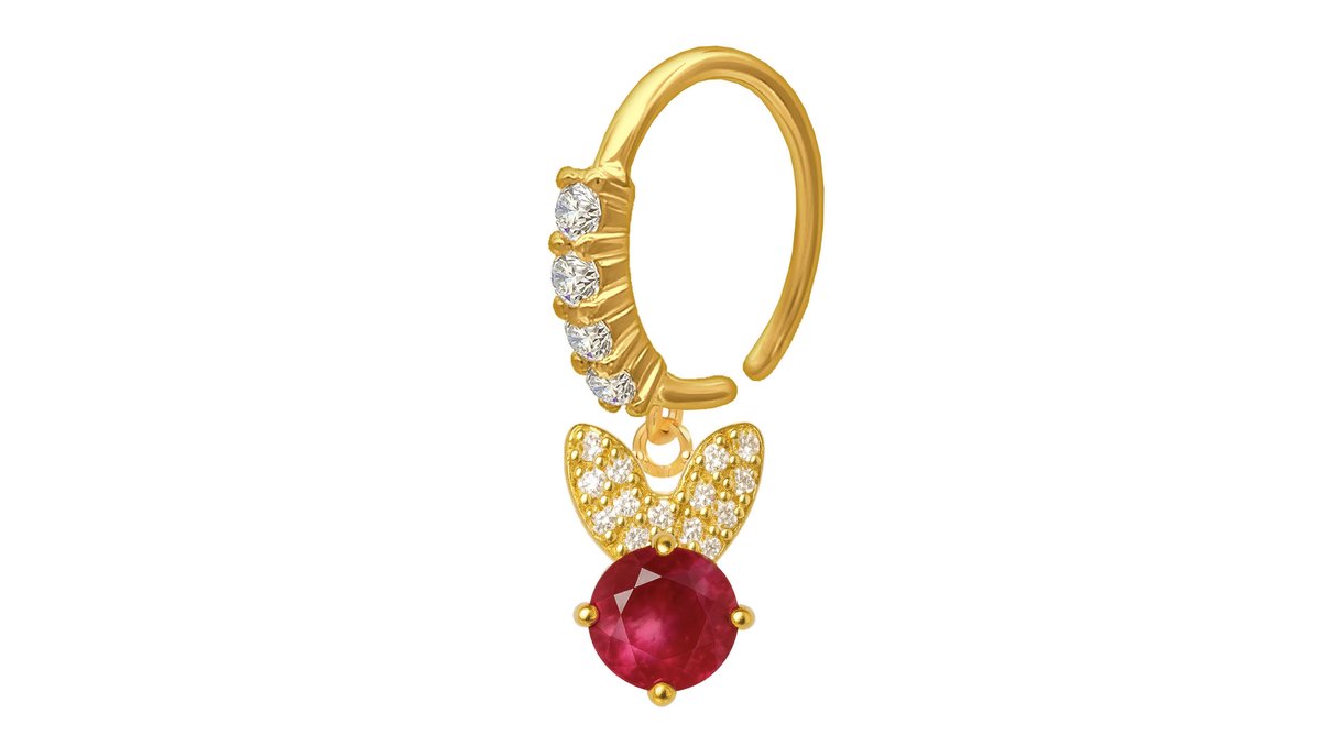 Gold Plated Seamless Ring with Red Zirconia Bunny Dangle