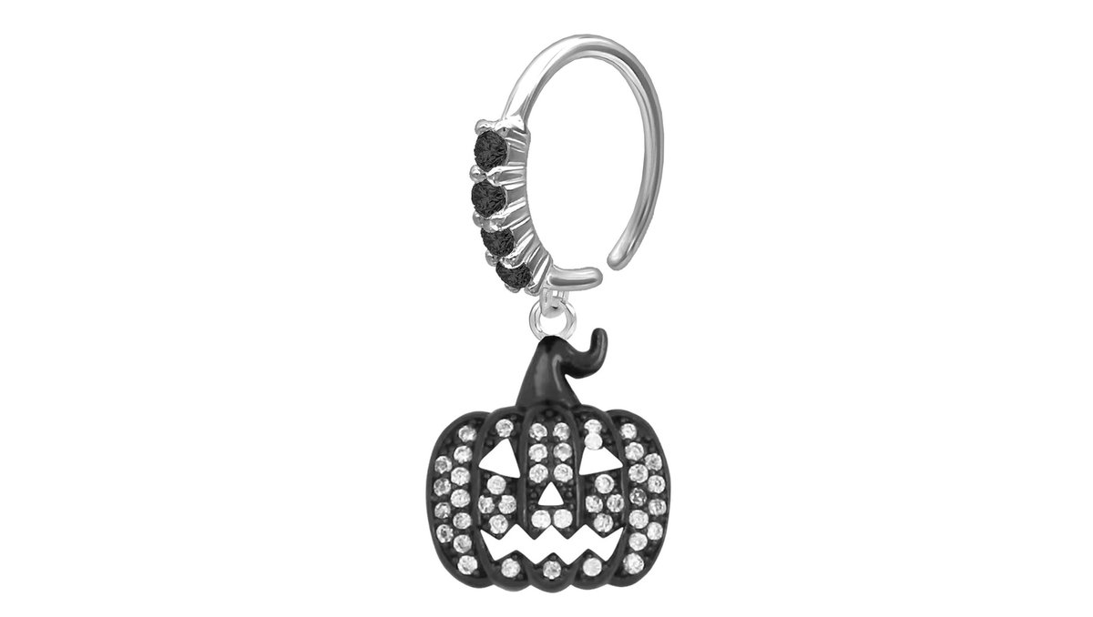 Surgical Steel Seamless Ring with a Halloween Pumpkin Dangle