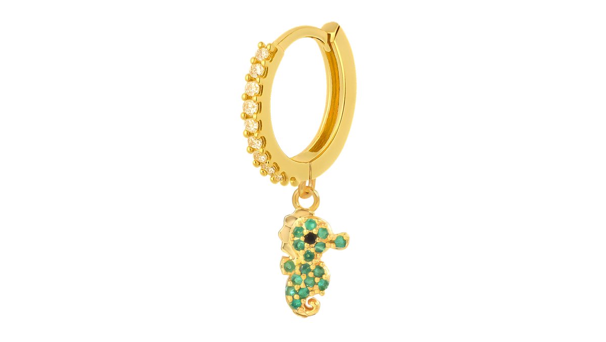 Gold Plated Clicker Ring with Seahorse Dangle and CZ