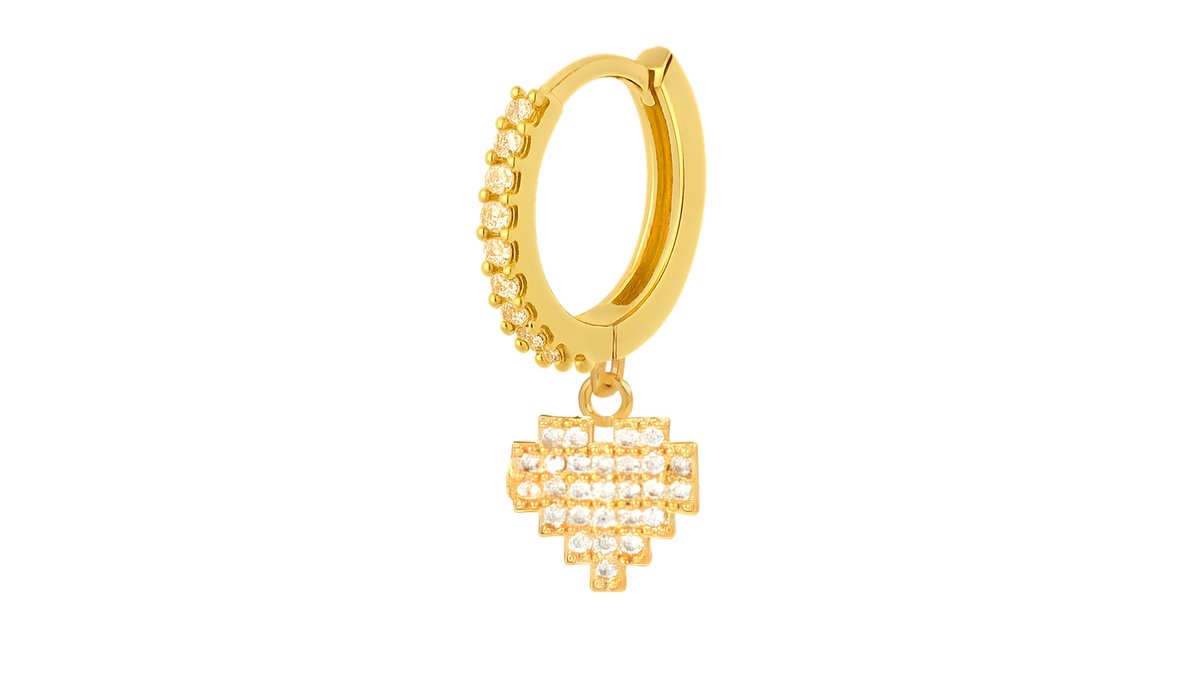 Gold Plated Seamless Ring with a Heart Dangle and Clear CZ
