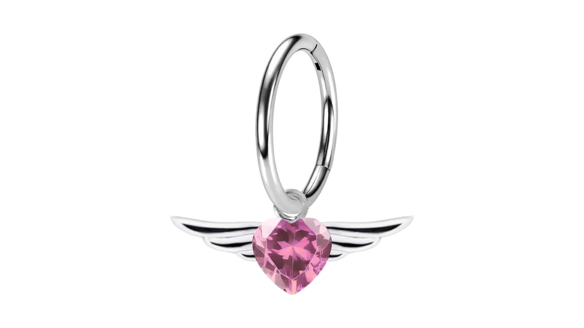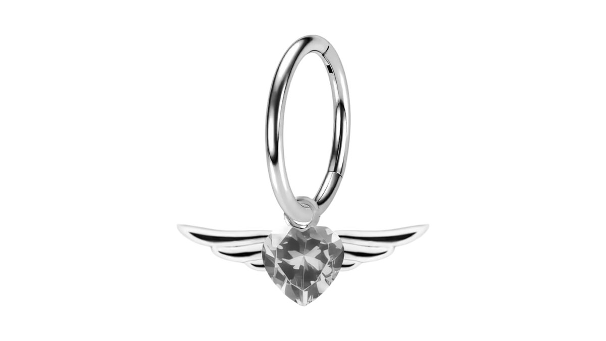 Surgical Steel Clicker Ring with Flying Heart Dangle