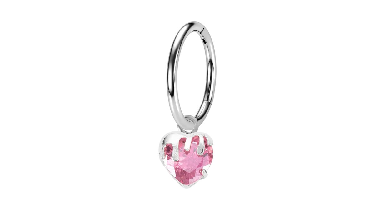 Surgical Steel Clicker Ring with Crystal Heart Dangle