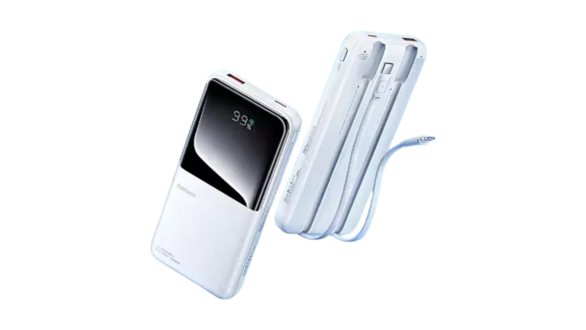 €32,60#186M#Remax®RPP-679 10000mAh -Led Display 20W+22.5W with 2 build-in Cables Power Bank – White