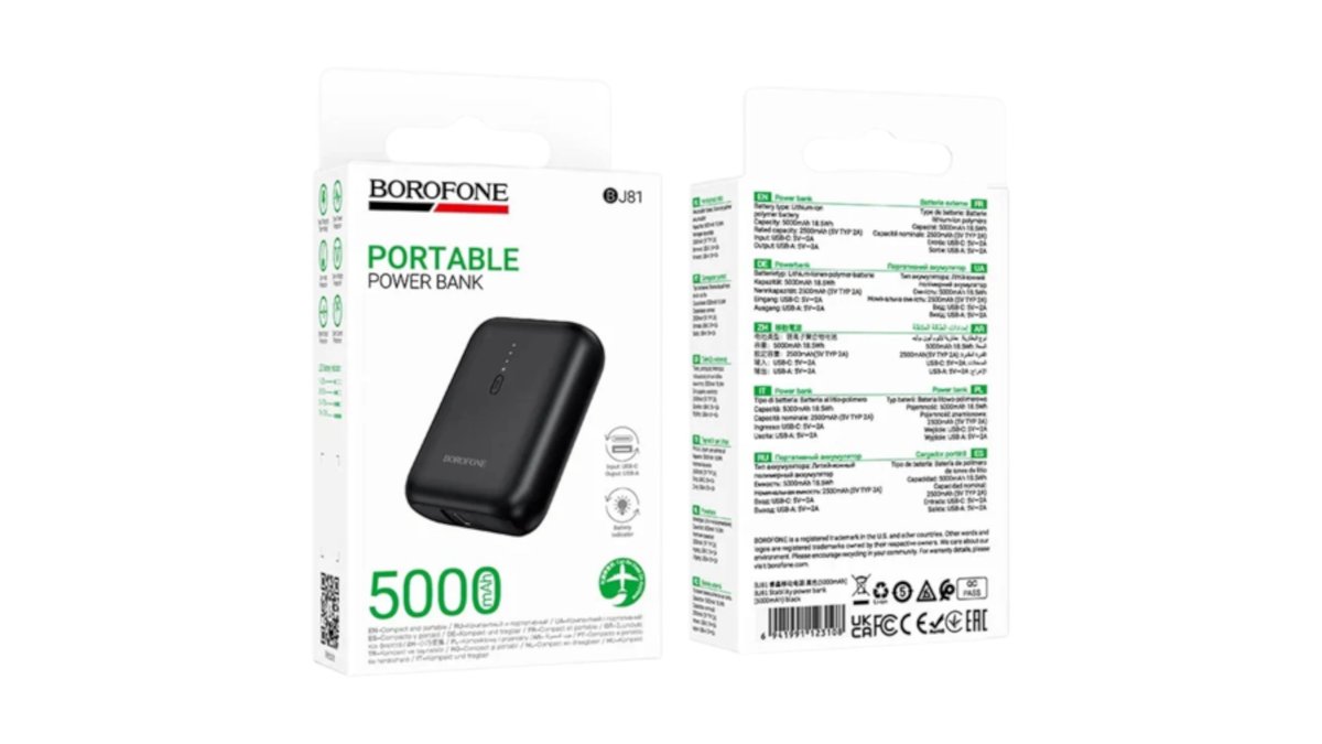 €25,40#186P#Borofone®BJ81 Power Bank (5000mAh) 18.5W with LED Indicator – Black