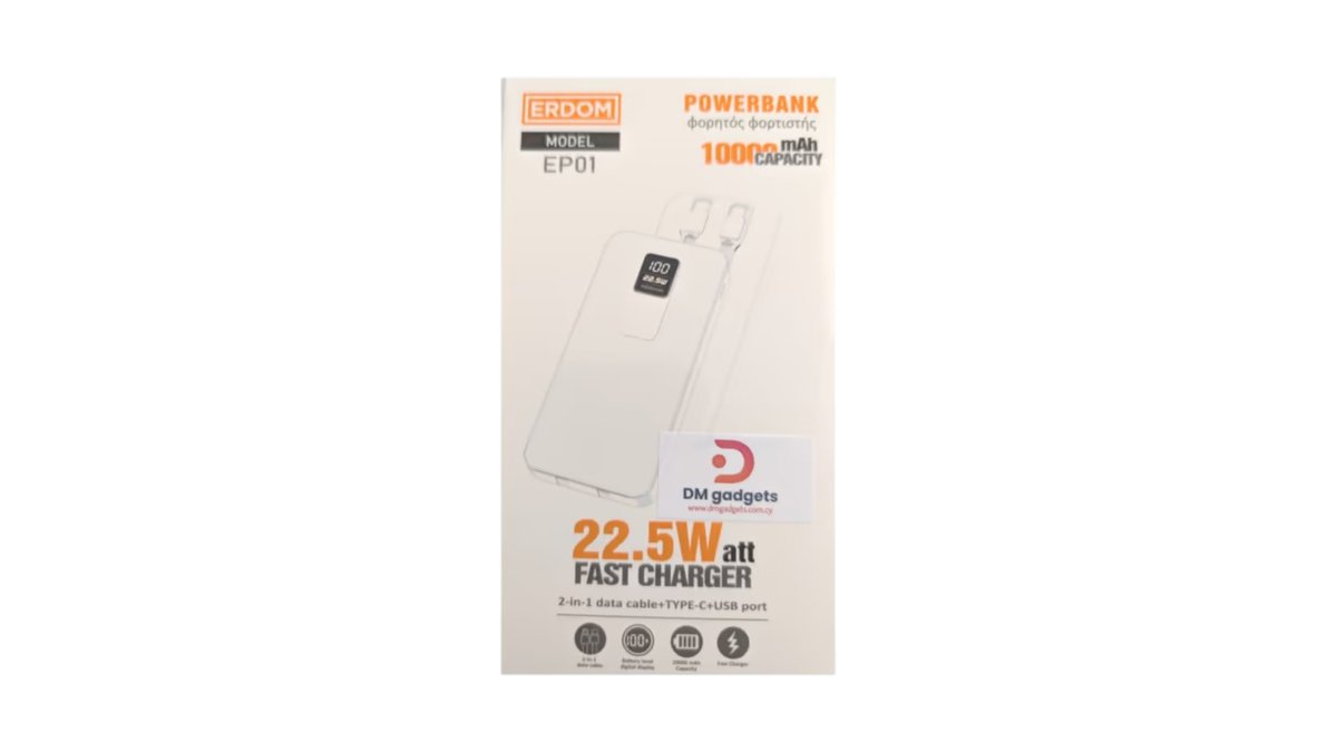 €30,40#186R#ERDOM®EP01 2 in 1 10000 22.5W Data cable + Type-C + USB Port -White