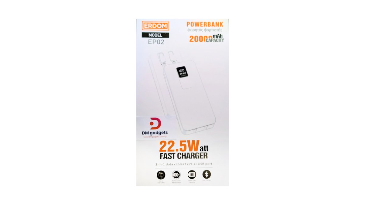€36,40#186S#ERDOM®EP02 2 in 1 20000 22.5W Data cable + Type-C + USB Port -White