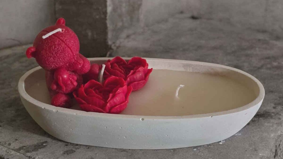 €40,00Set Of Concrete Bowl With Scented Candle And Porcelanato Vase With Scented Candles