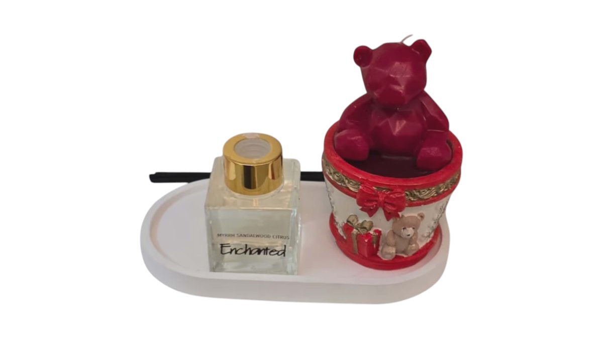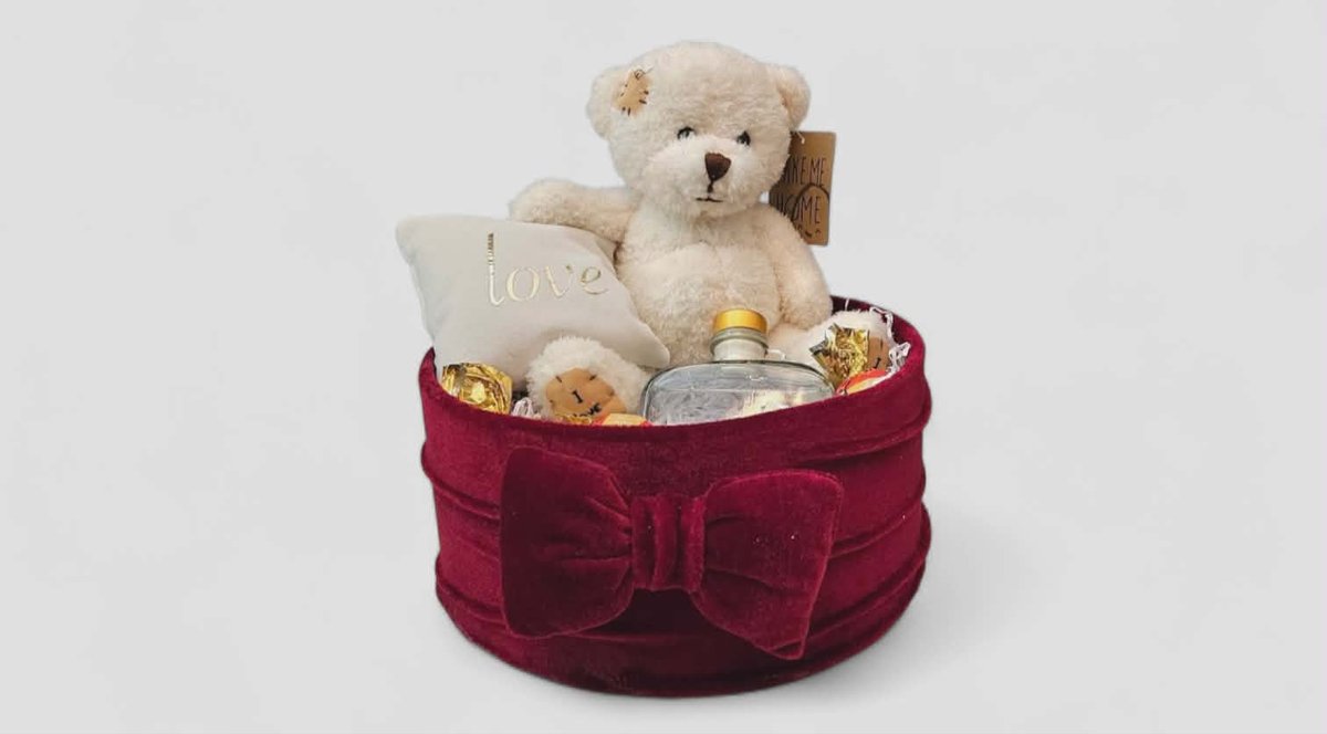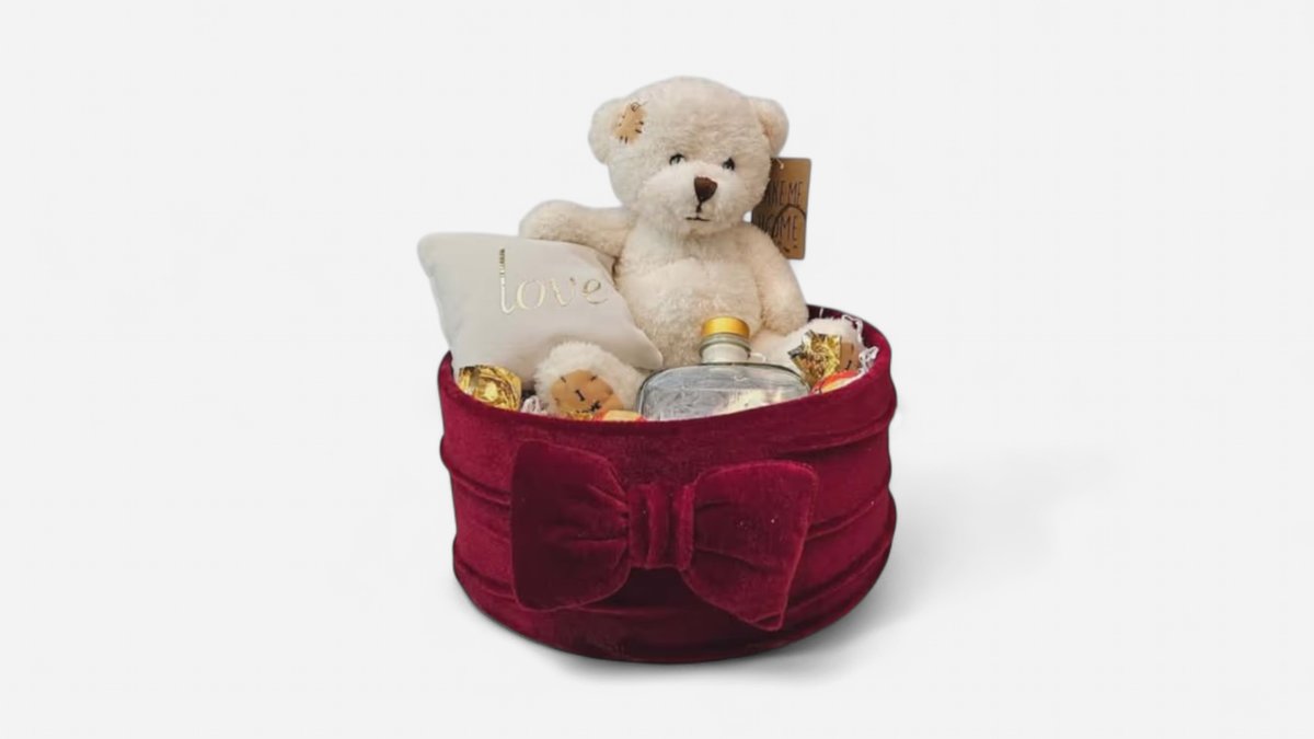 €58,00A Luxury Handcrafted Velvet Box With Bow,A Teddy Bear A Mini Velvet Cushion And A Reed Diffuser