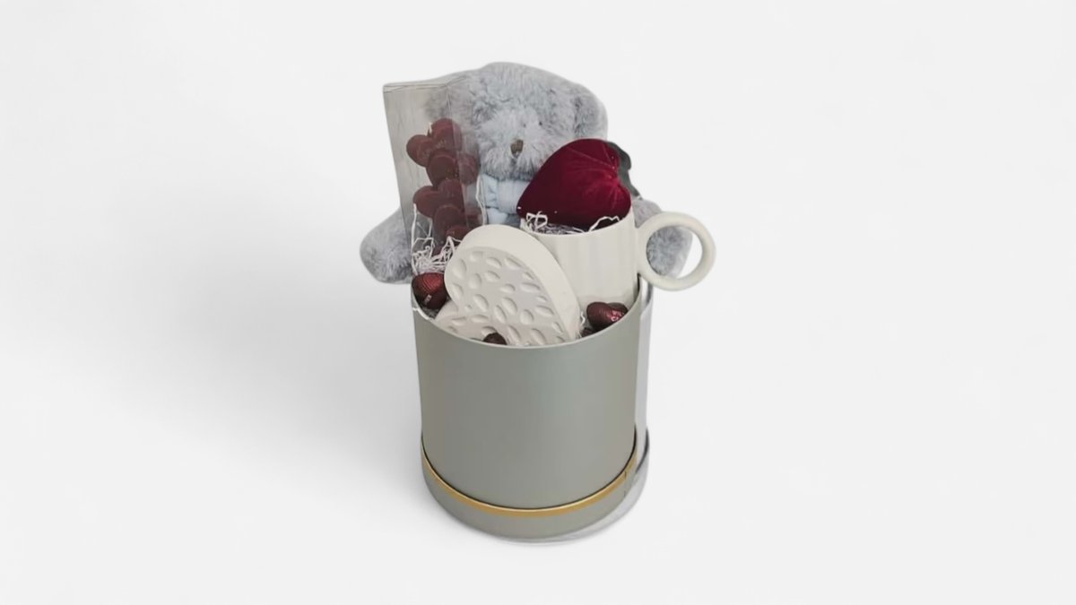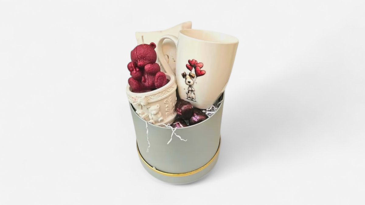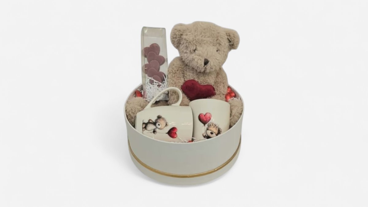 €58,00A Big Luxury Box With A High Quality Teddy Bear, 2 Mugs With A Cute Design, A Scented Candle And 6 Marks & Spencer Chocolates