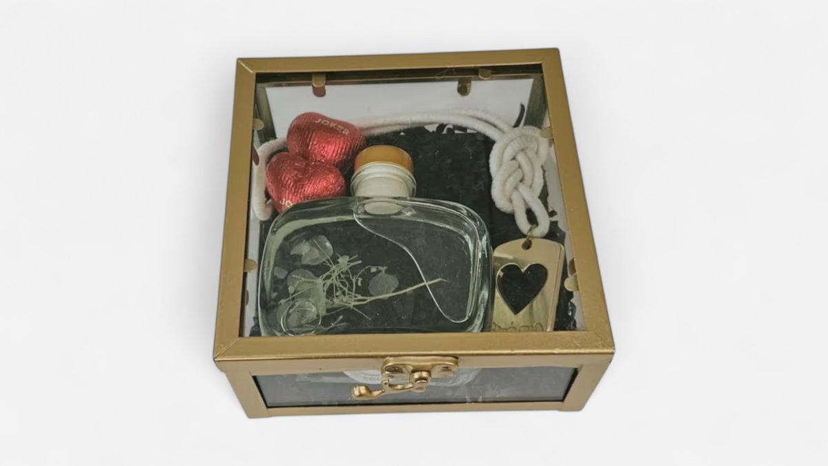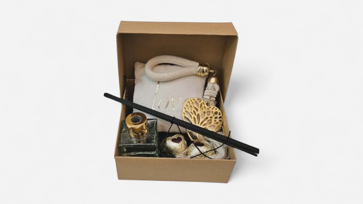 €40,00A Stylish Box With A 24k Gold Plated Luxury Heart Charm,Diffuser With Sticks And A Mini Velvet Pillow