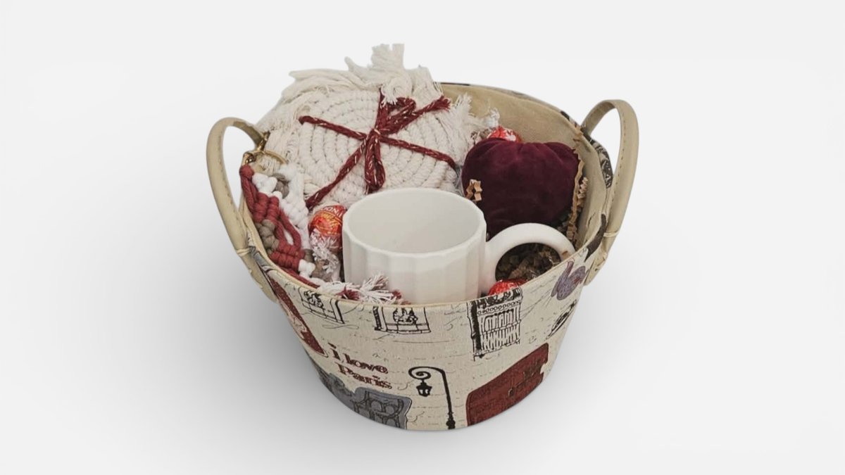 €58,00Hamper With Two Macrame Coasters, A Stylish Mug, A Macrame Keyring,A Handcrafted Velvet Heart