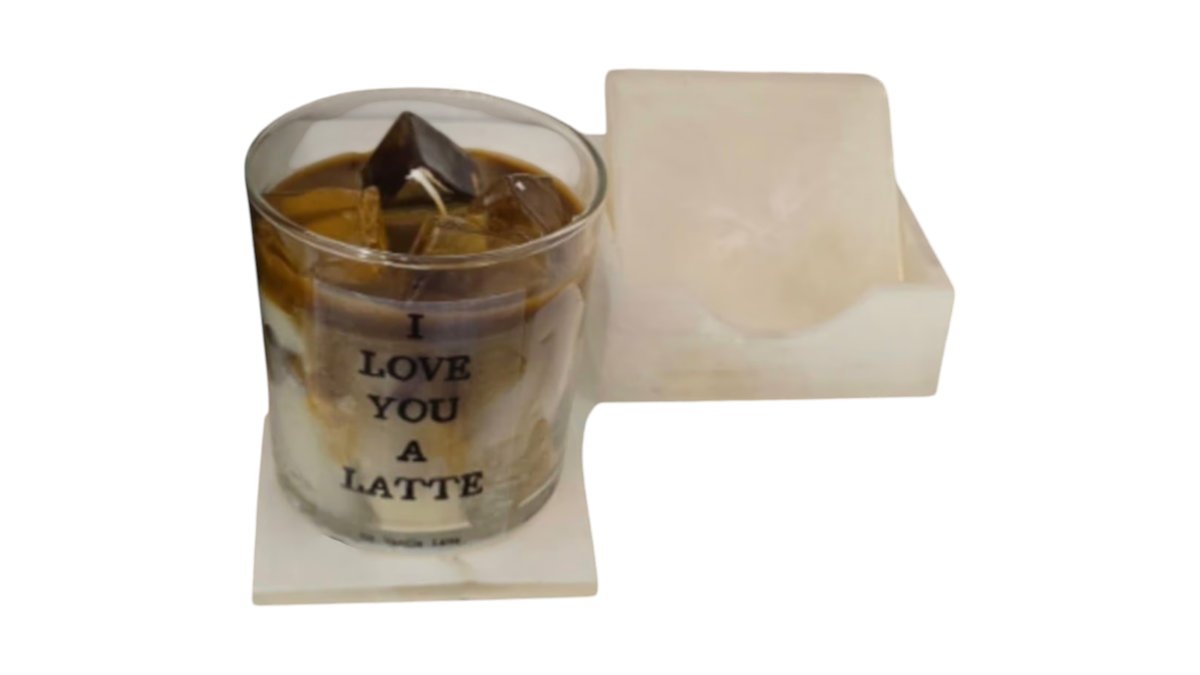 €50,00A Luxury Black Box With 2 Macrame Coasters, A Mug With A Cute Design And 2 Handmade Heart Scented Candles