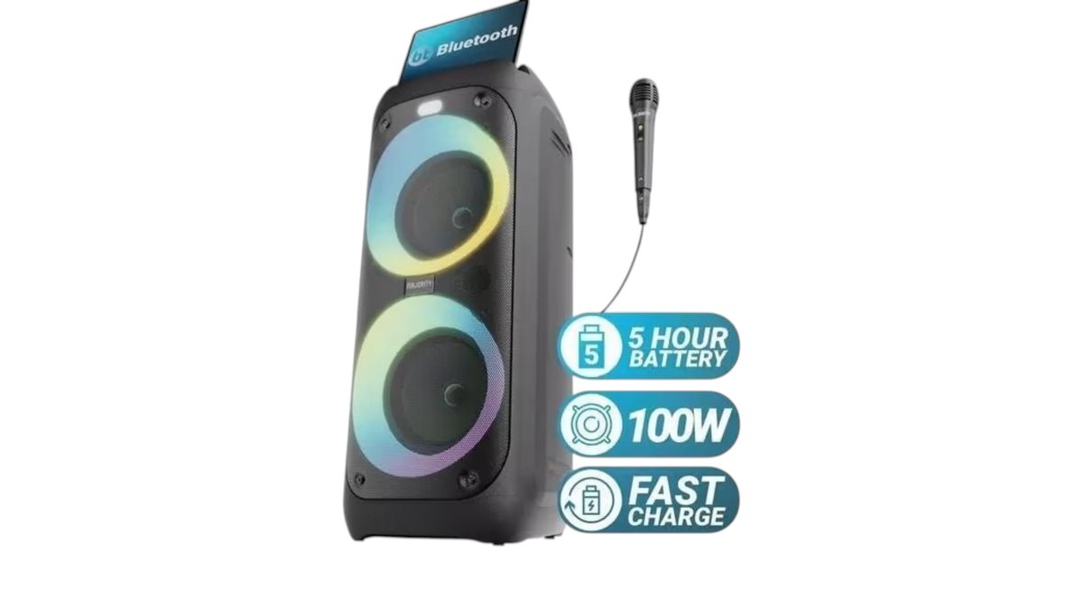 Majority Speakers Portable Karaoke P200 100W Wire Mic BT/USB/RGB UK