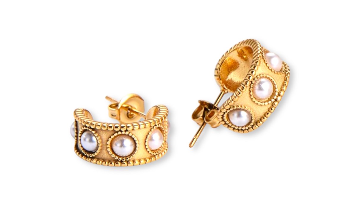 Golden Stainless-Steel Pearl Dangle Earrings