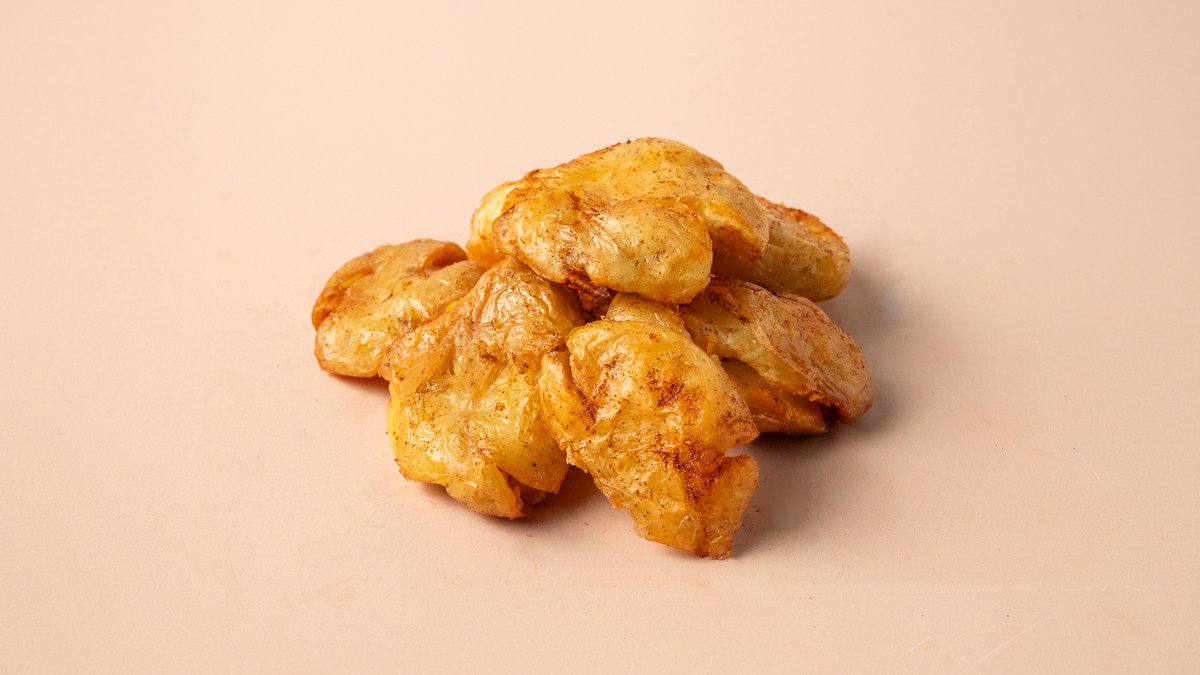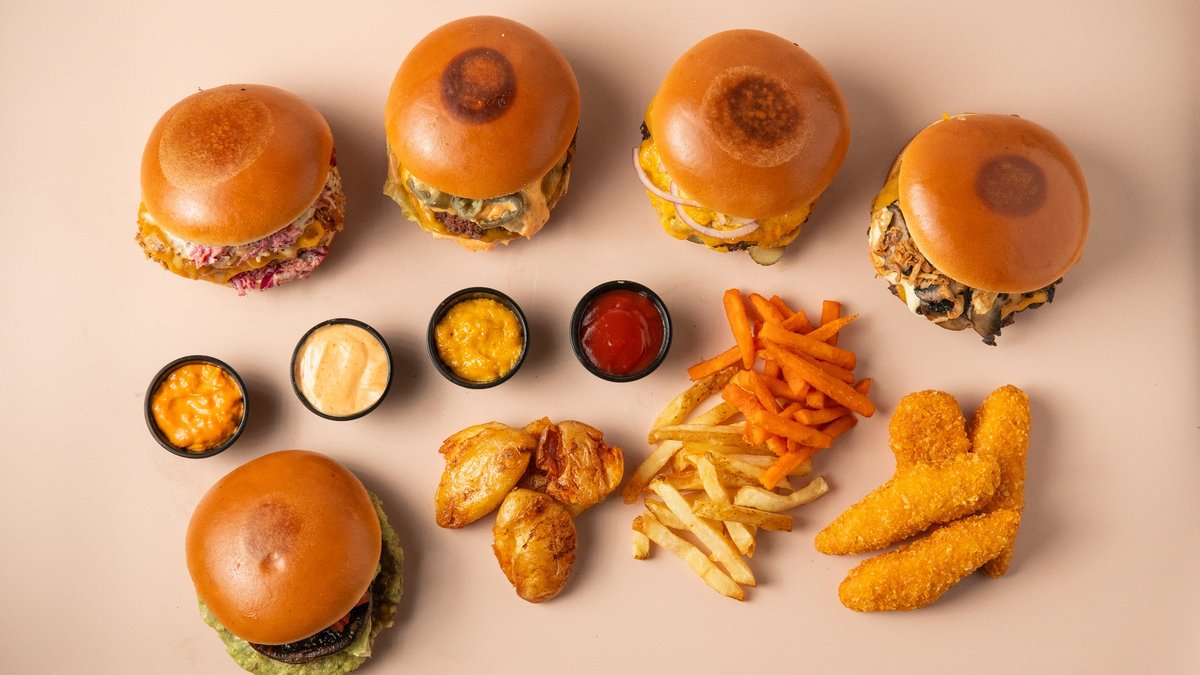 2x100gr smash 100% beef patties, double cheddar cheese, caramelised onions, bacon, iceberg, pickles and barbecue sauce in a brioche bun. Served with crispy fries.