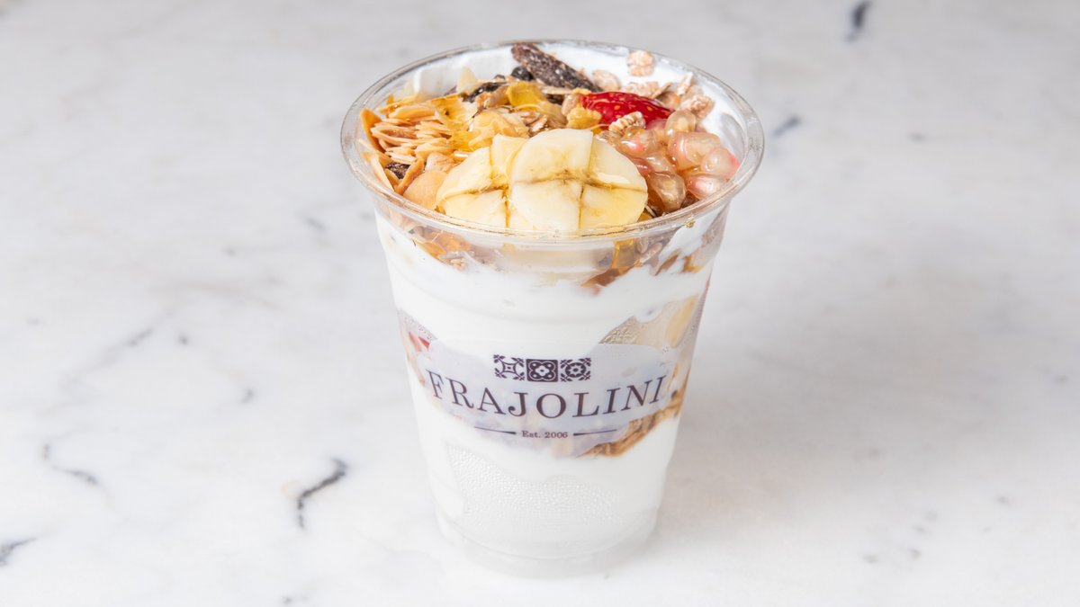 Light yogurt, granola and dried fruits