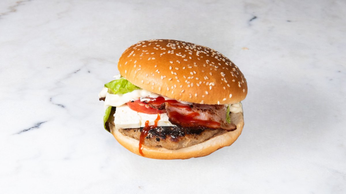 Grilled chicken, bacon, omelette, edam cheese, iceberg, tomato and cocktail sauce