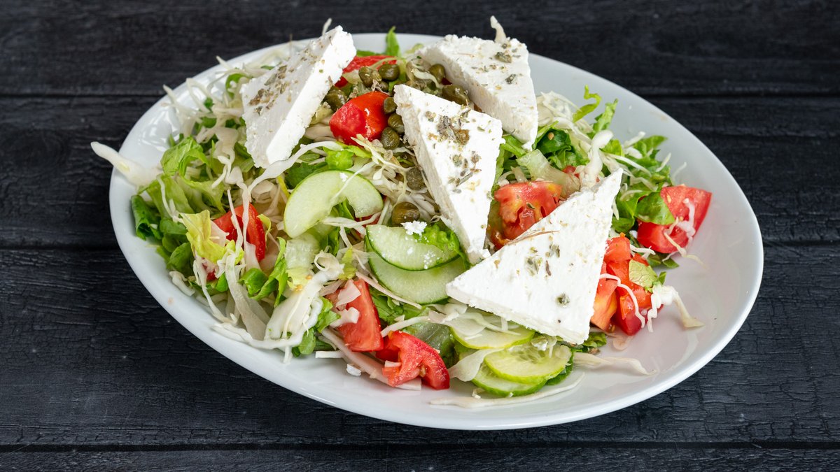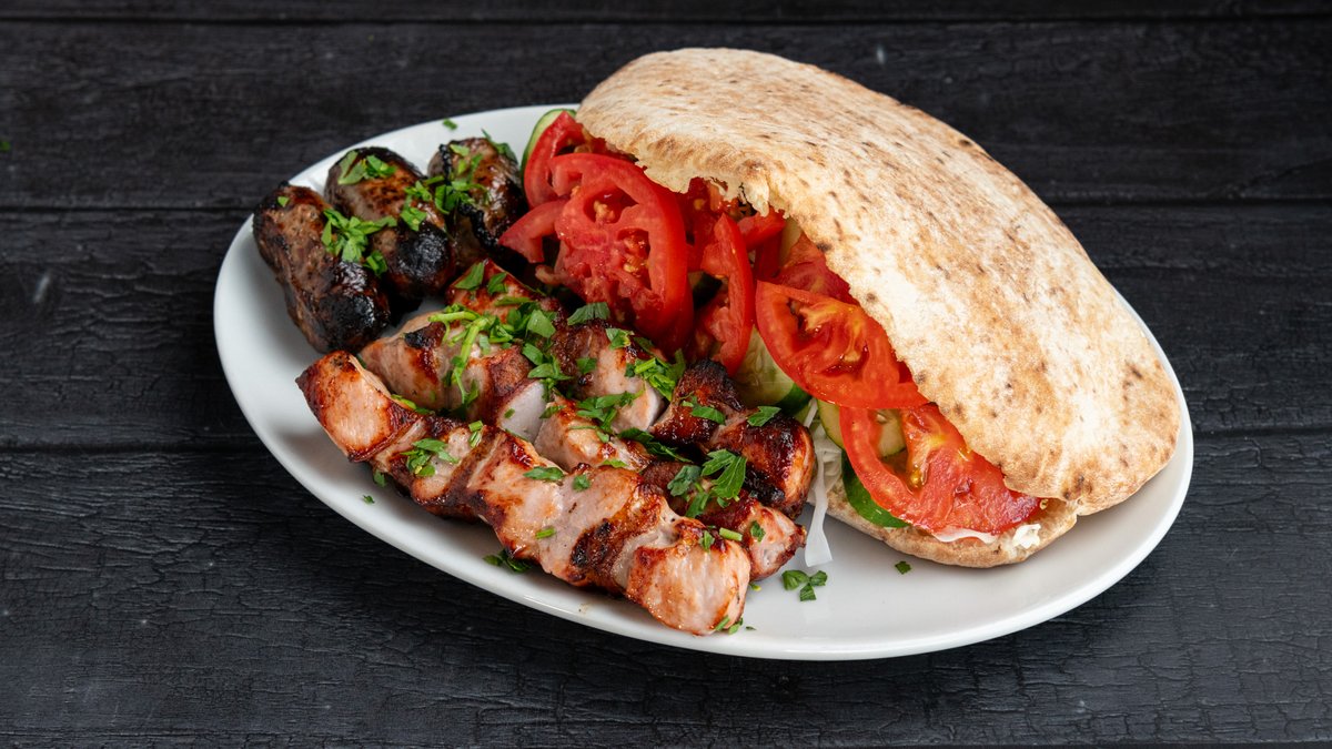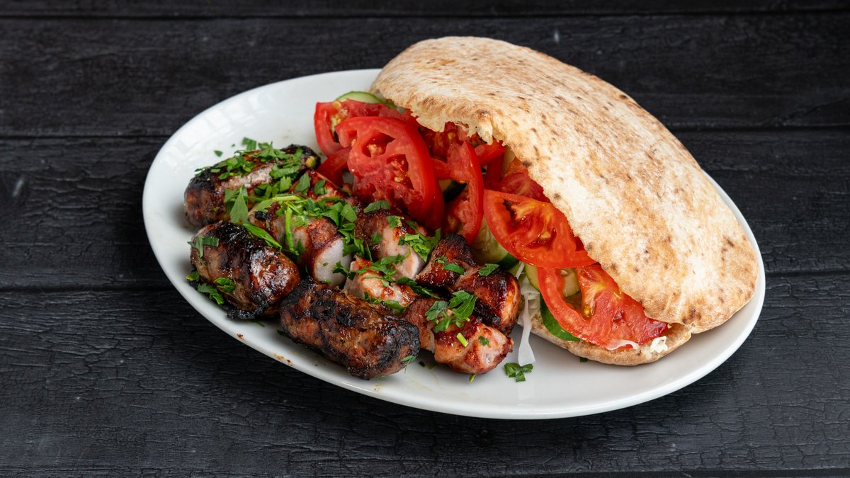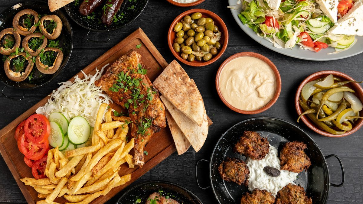 Όλες οι μερίδες σερβίρονται με πατάτες, σαλάτα και πίτα