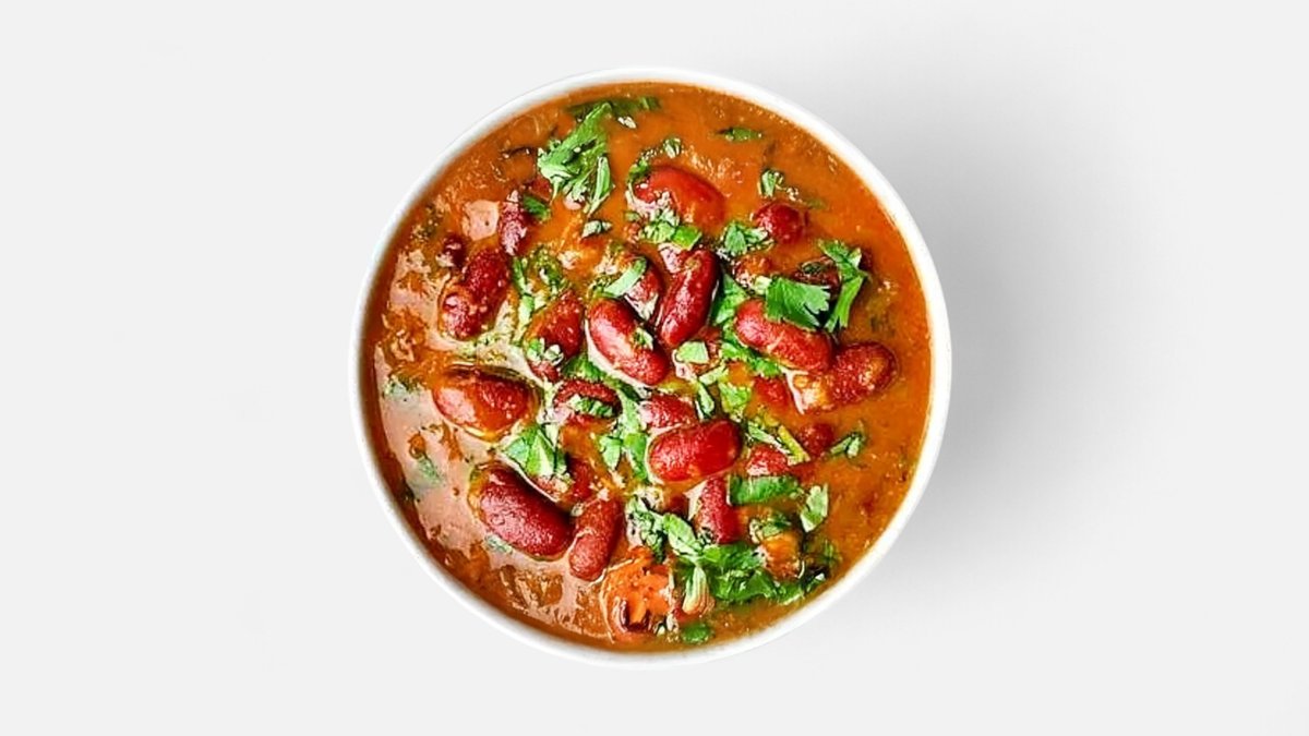 Red kidney beans cooked in a tangy and spicy tomato gravy, usually dairy-free