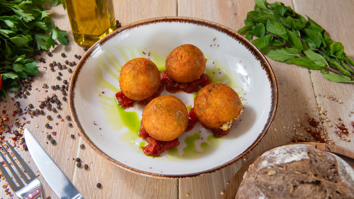 Τραχανοκεφτέδες με χαλούμι και μαρμελάδα ντομάτας
