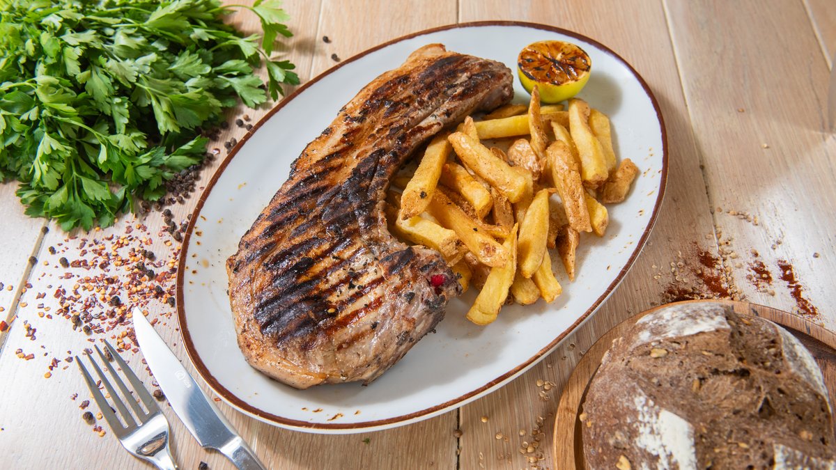 Χοιρινή Μπριζόλα Με Πατάτες Τηγανητές