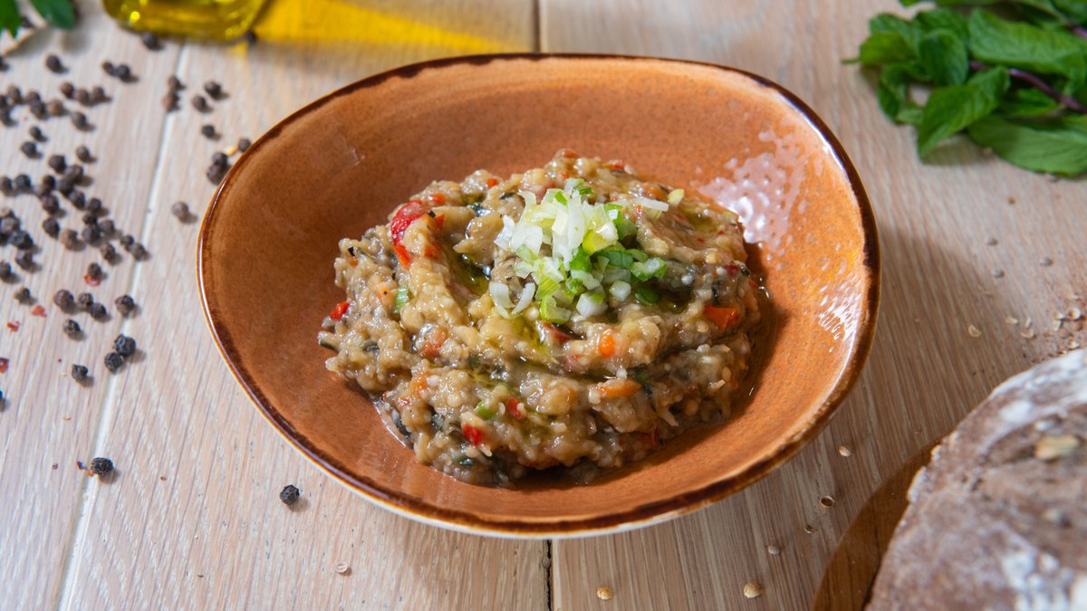 Καψαλισμένες μελιτζάνες, σκόρδο, πιπεριά φλωρίνης, ξύδι