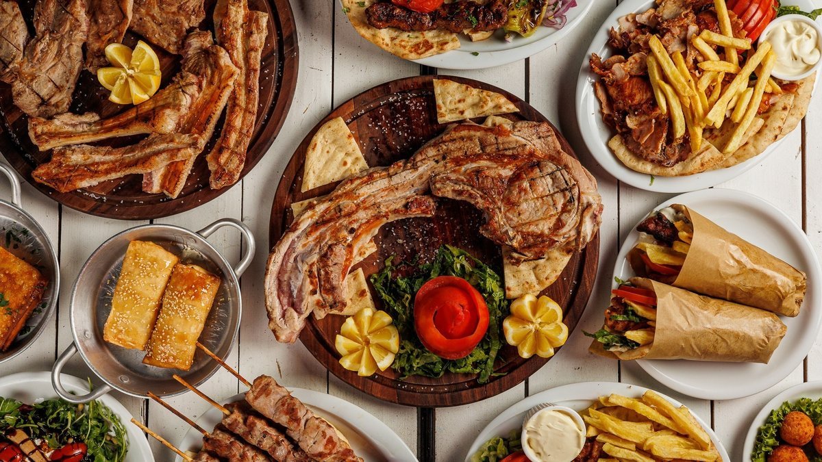 Enjoy a variety of marinated grilled meats and falafel, combined with fresh salads and homemade dips!