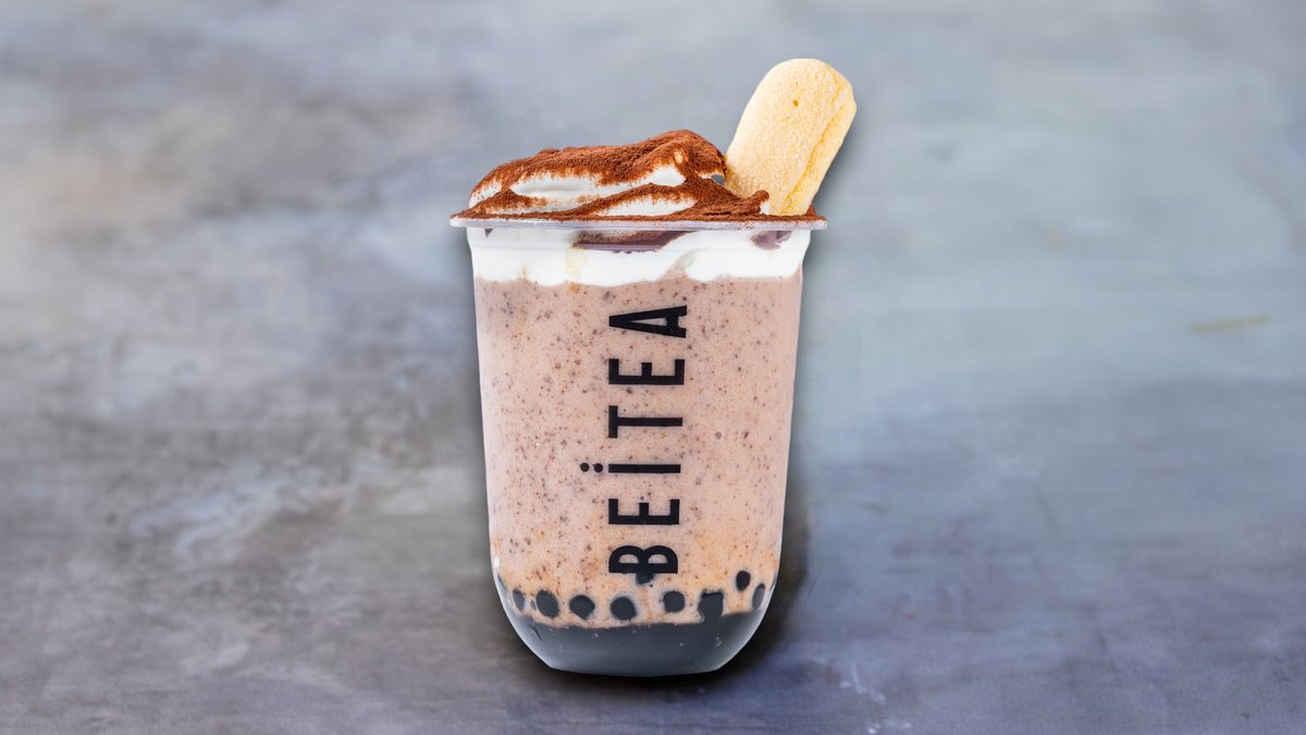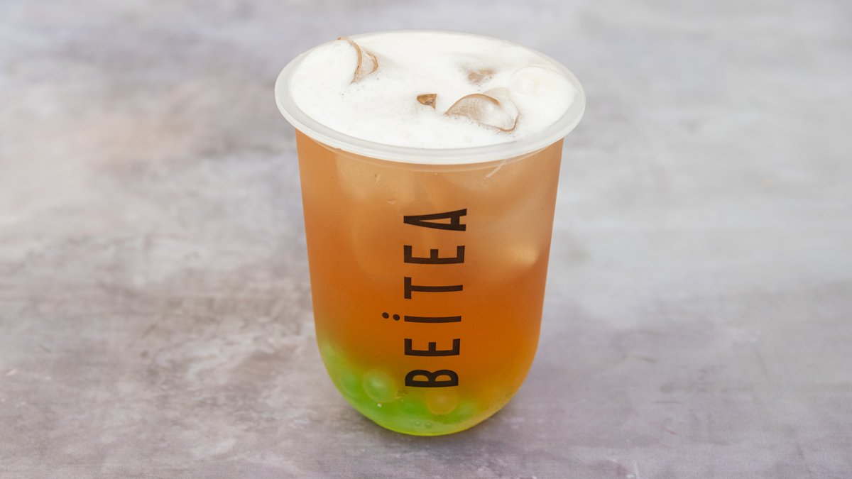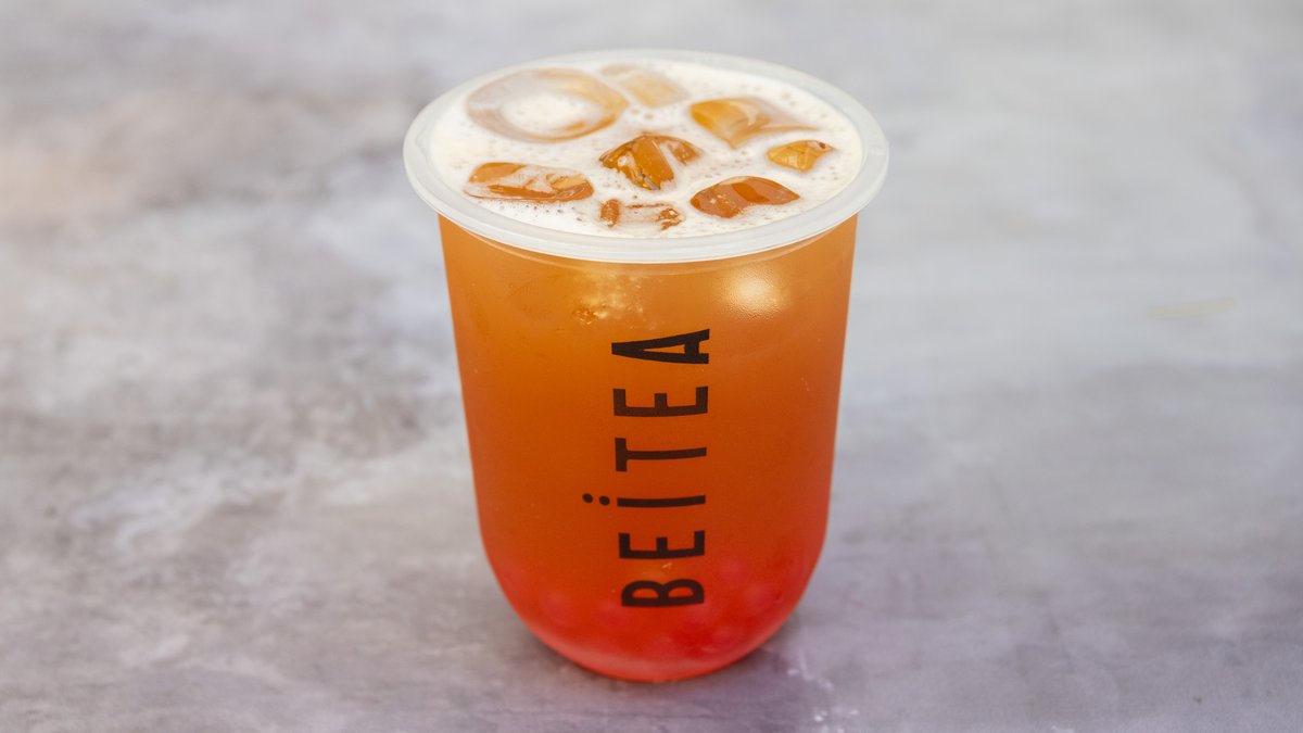 Early grey milk tea, available with hints of strawberry or coconut, and topped with cream, for a silky luxurious finish