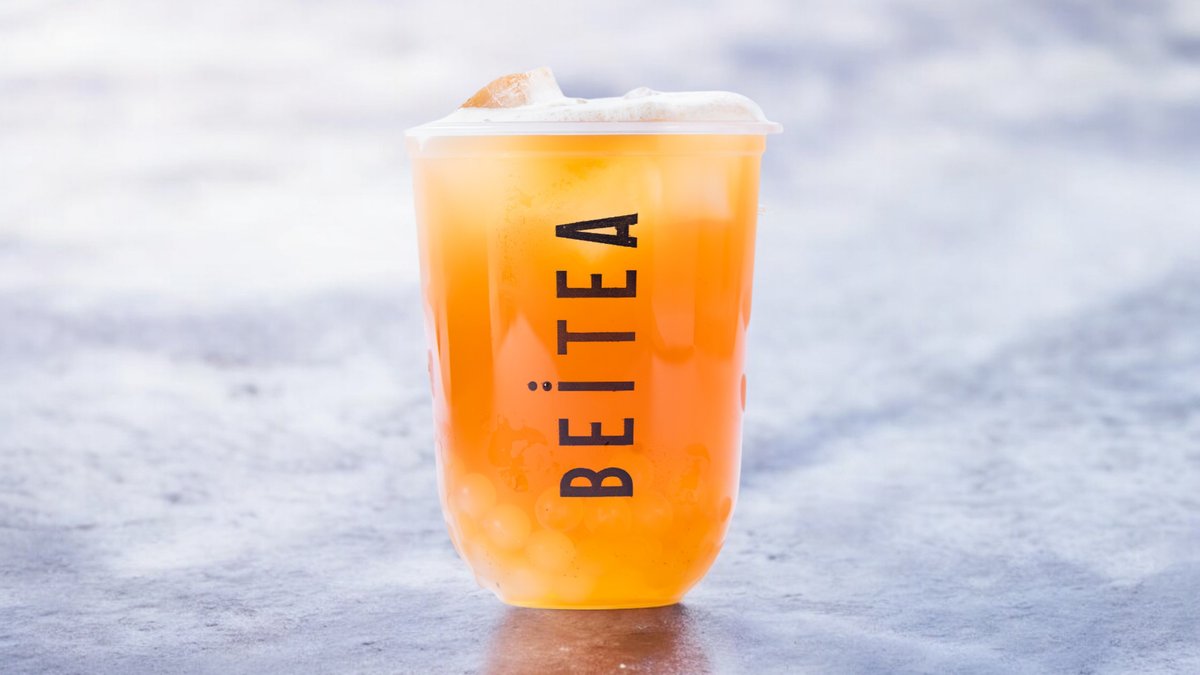 Fruity tea-based smoothies, garnished with a lightly salted homemade cream and tapioca pearls, combining creaminess and freshness