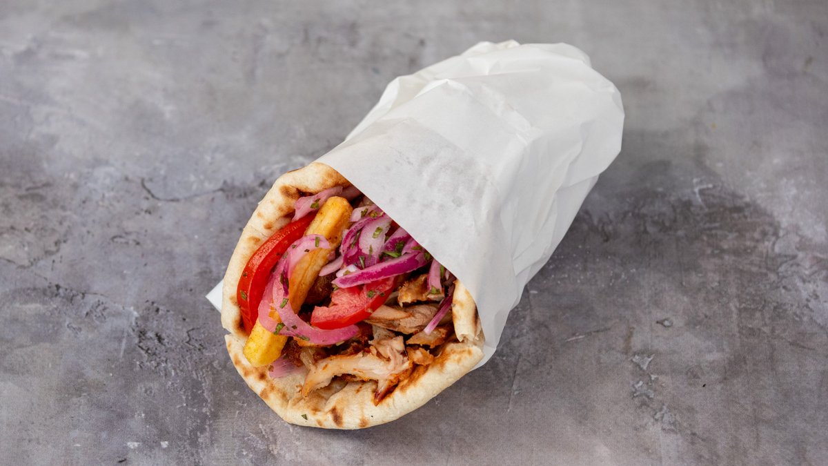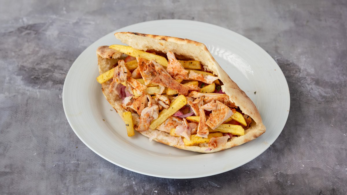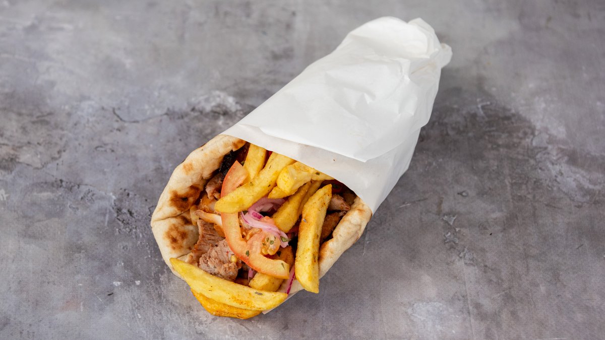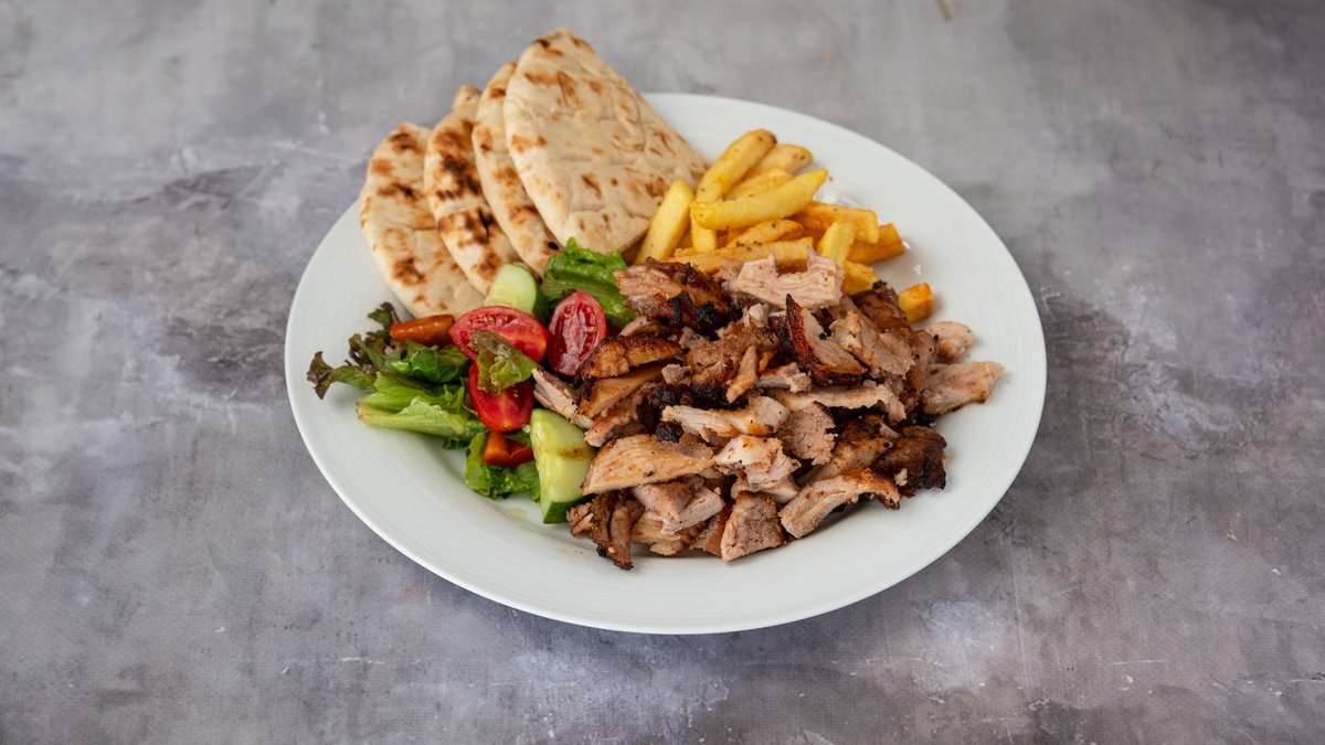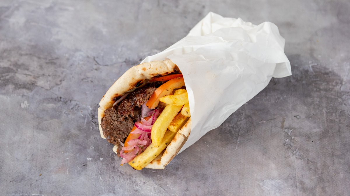 Σερβίρεται με κρεμμύδι, ντομάτα, πατάτες και σάλτσα της επιλογής σας.