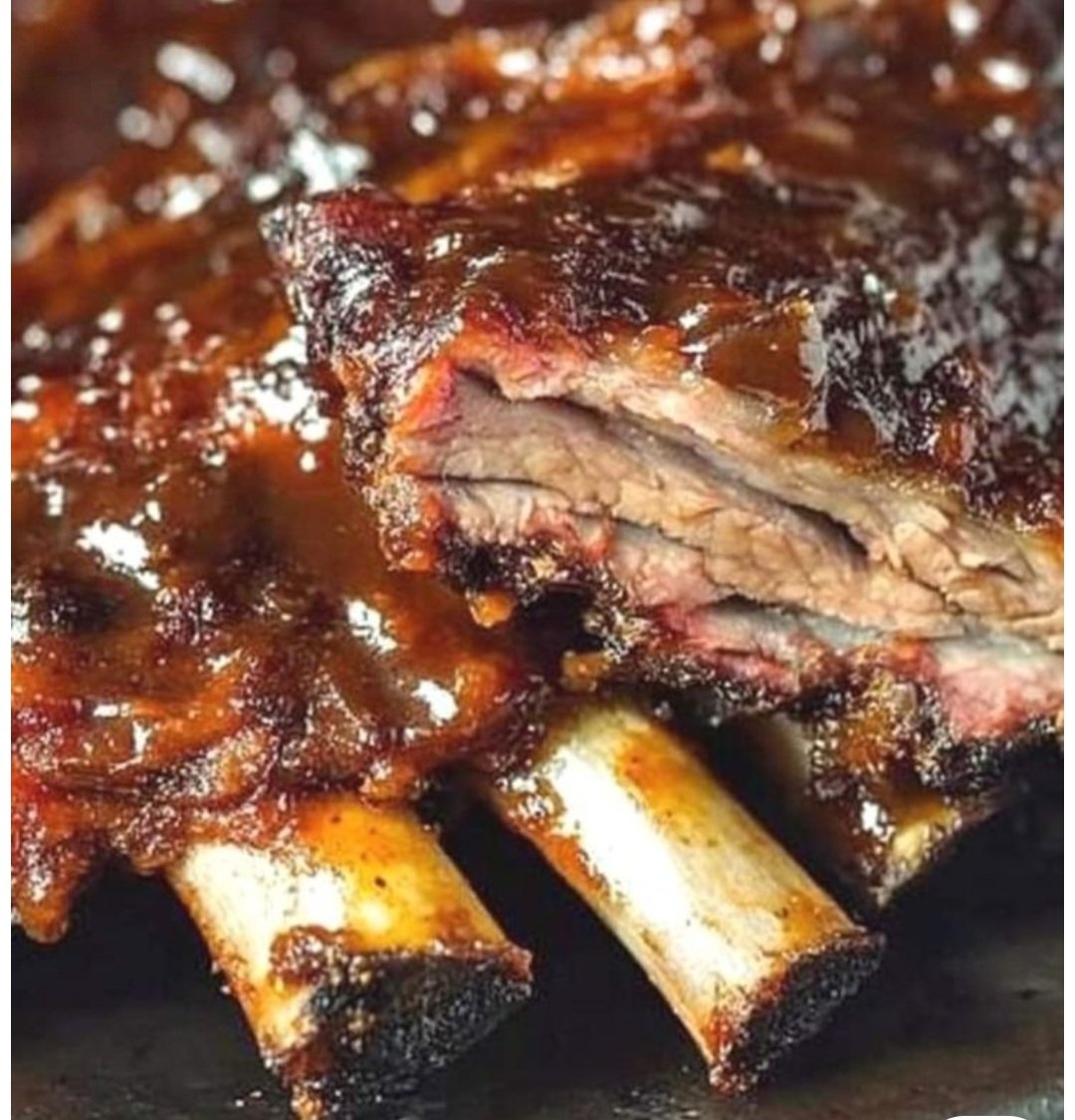 800gr Black pig smoked spare ribs slow cooked served with BBQ glaze, fries and side salad.