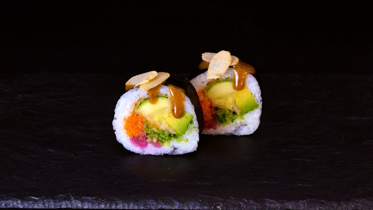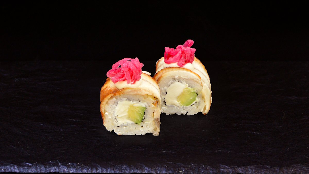 Eel, Philadelphia cheese, cucumber, avocado, pickled onion, garlic mayo