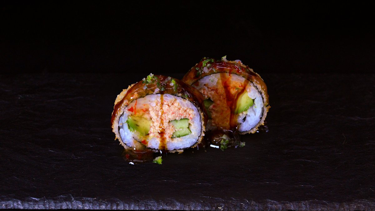 Eel, Philadelphia cheese, cucumber, avocado, panko breadcrumbs, sweet chili mayo