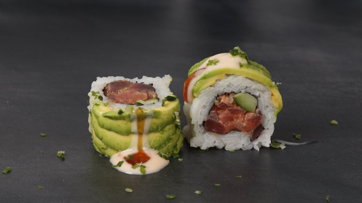 Spicy tuna mix with avocado and cucumber, enhanced with Sriracha sauce, chili mayo, chives and a touch of teriyaki sauce.